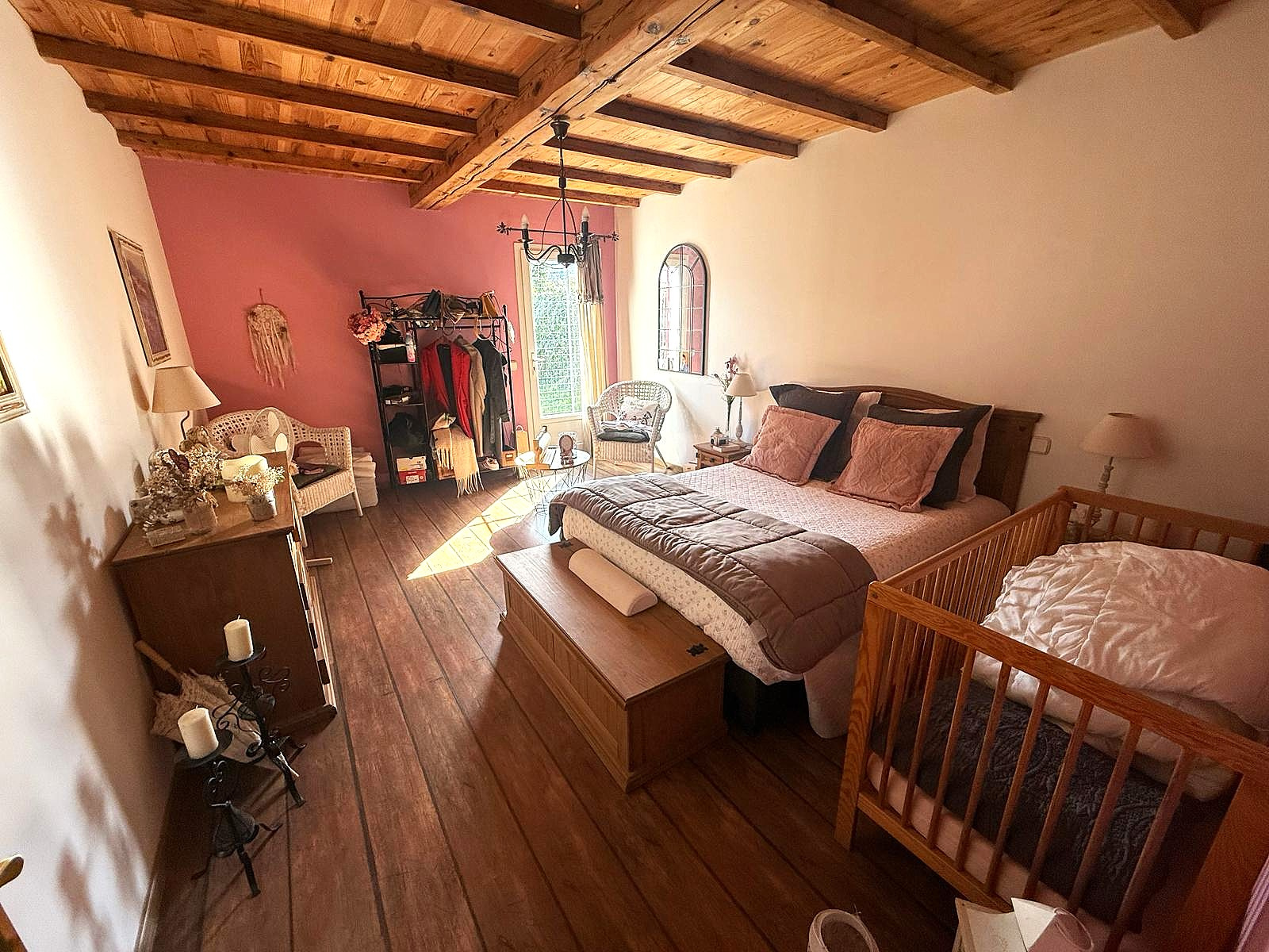 Le logement principale se compose d'une cuisine tout équipée ouverte sur une grande et belle pièce de vie avec ses poutres apparentes, buanderie, 4 chambres dont une avec dressing, salle d'eau avec puit de lumière et wc séparé.