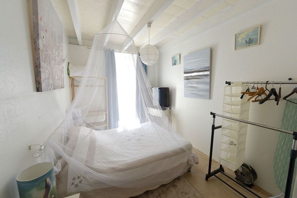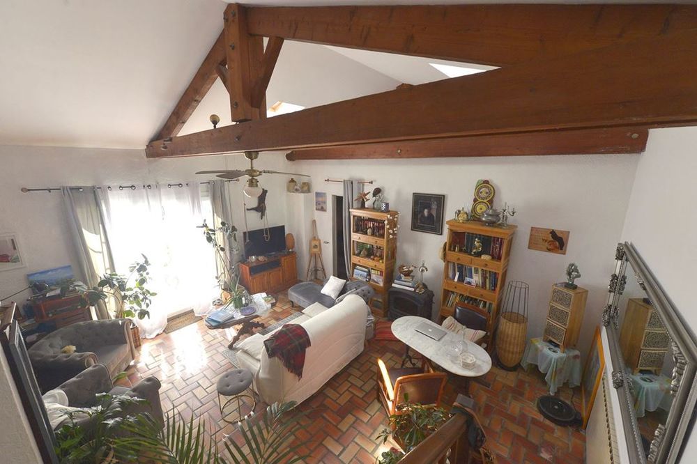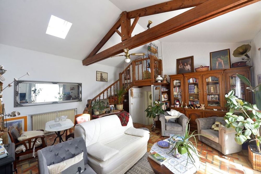 Cette charmante maison charentaise propose un vaste salon séjour bénéficiant d'une belle hauteur sous plafond.
