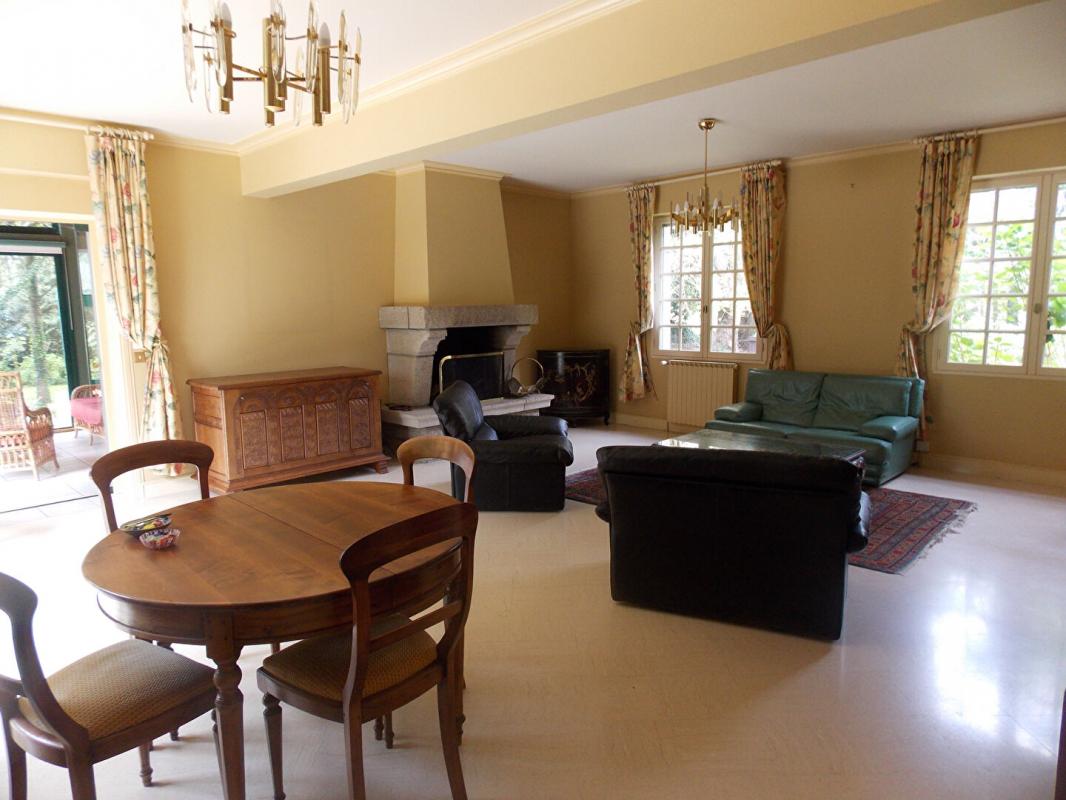 GRANDE PIECE DE VIE AVEC CHEMINEE GRANIT OUVERTE SUR VERANDA DE QUALITE AVEC CHAUFFAGE AU SOL DONNANT SUR TERRASSE PLEIN SUD