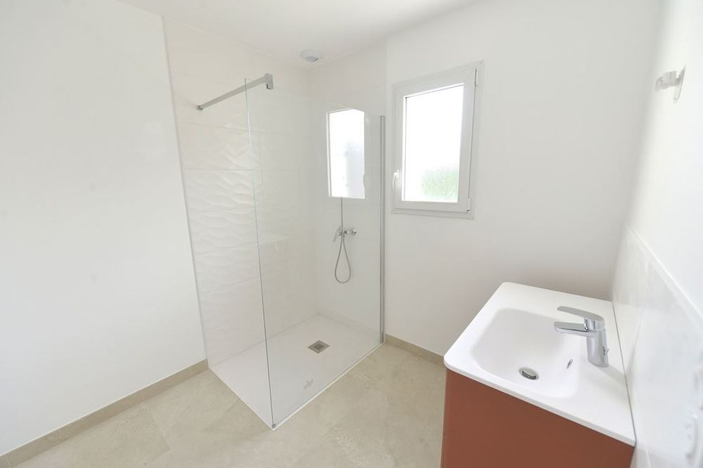 Meschers sur Gironde, Maison neuve d'habitation, DPE double AA, de plain-pied d'environ 100 m² sur une parcelle d'environ 450m², 3 chambres, un salon séjour, cellier, 2 salles d'eau, WC indépendant et garage.