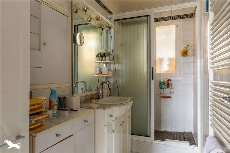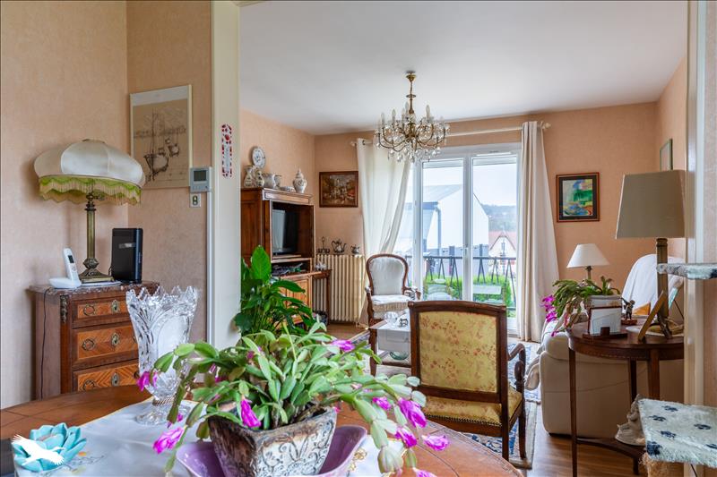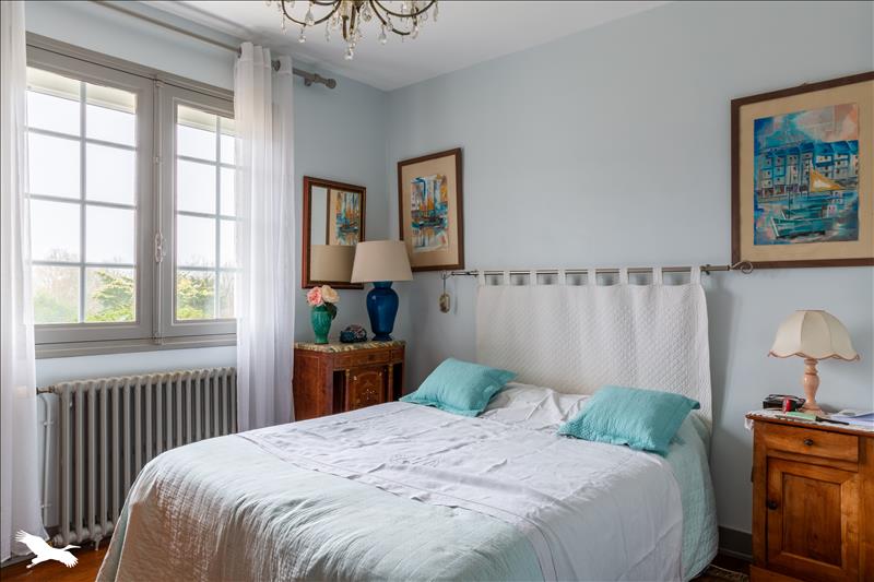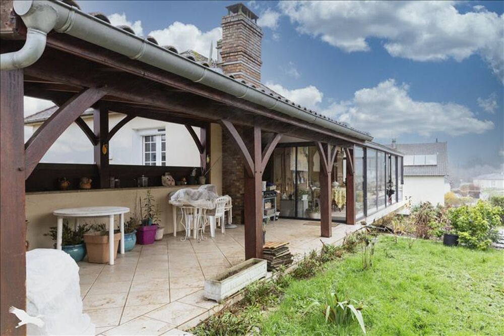 A l'étage : une pièce de vie lumineuse, une cuisine avec accès à la véranda, trois chambres, une salle d'eau.