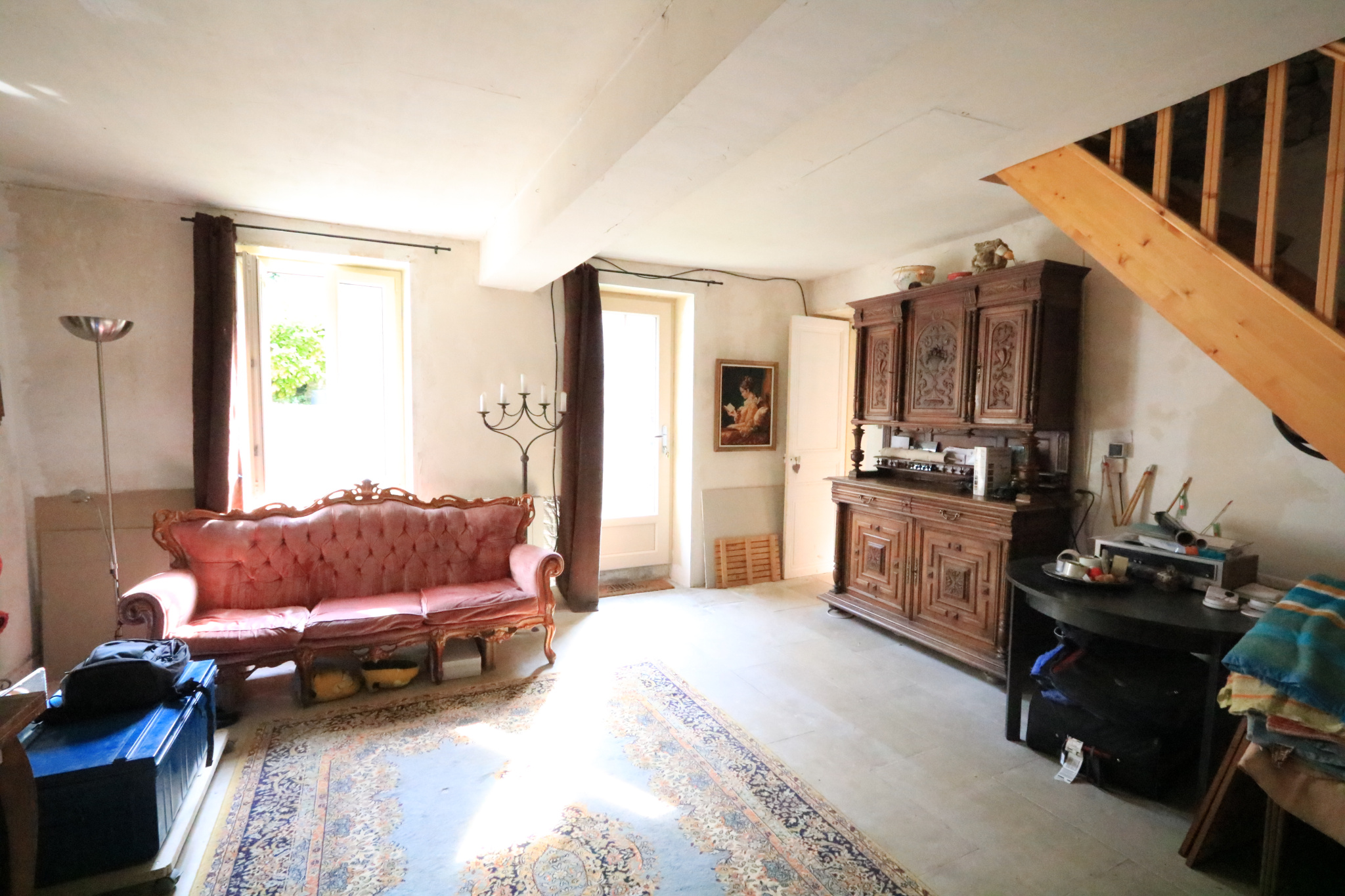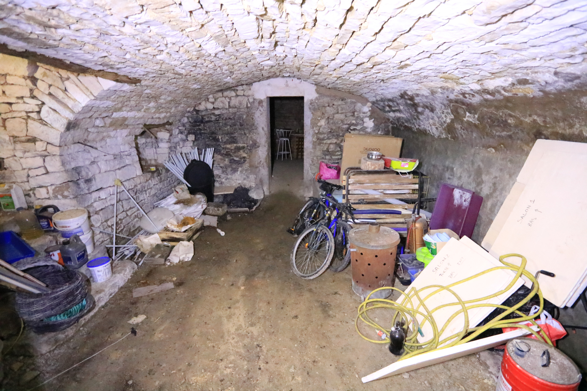 Maison élevée sur cave voûtée comprenant au RDC : entrée sur cuisine/salle à manger avec cheminée, salle d'eau/WC, salon?