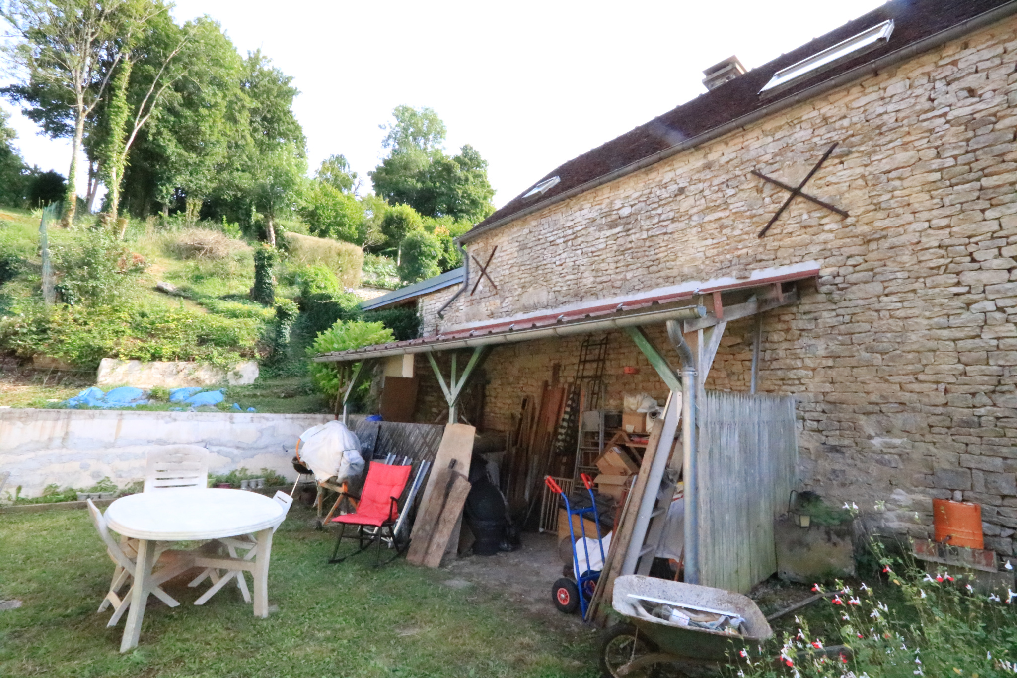 Cave coûtée, appentis, jardin clos, tout à l'égout, double vitrage, isolation sous le toit, chauffage (cuisinière à bois, poêle à bois, radiateurs électriques).