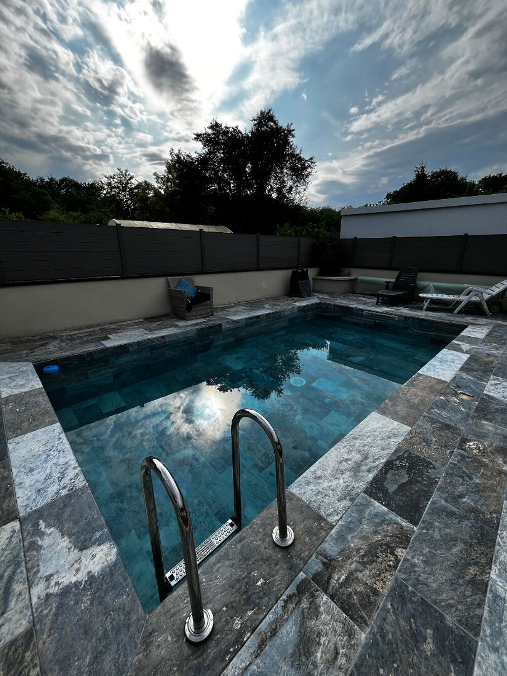 Cerise sur le gâteau, vous pourrez également profiter d'une superbe piscine de 4x7 en carrelage de Pierre de Bali orientée Sud-Ouest avec joint Epoxy et pompe à chaleur.