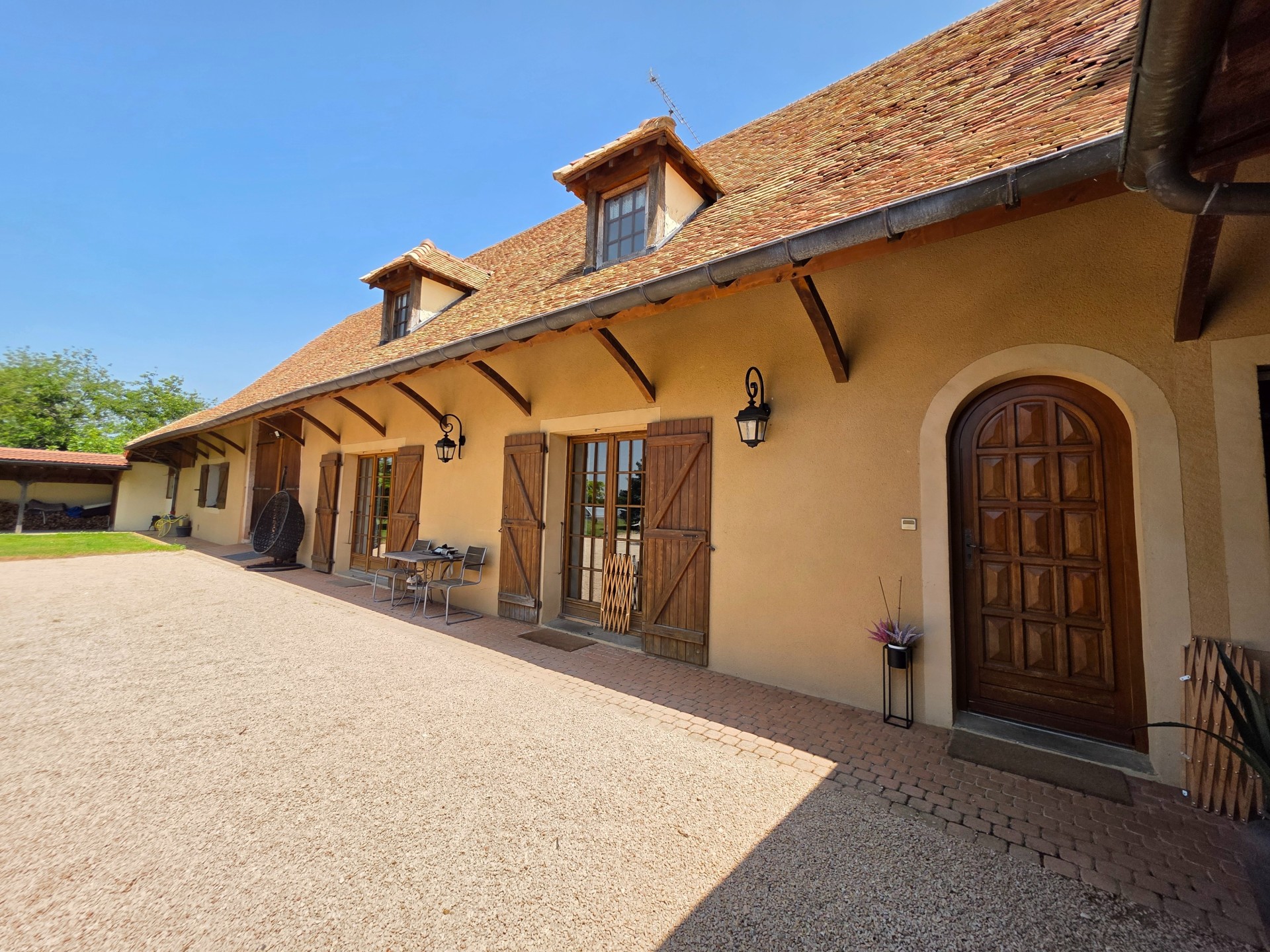 D'une surface habitable d'environ 244 m², la maison est implantée sur un terrain clos et arboré de 3 700 m².