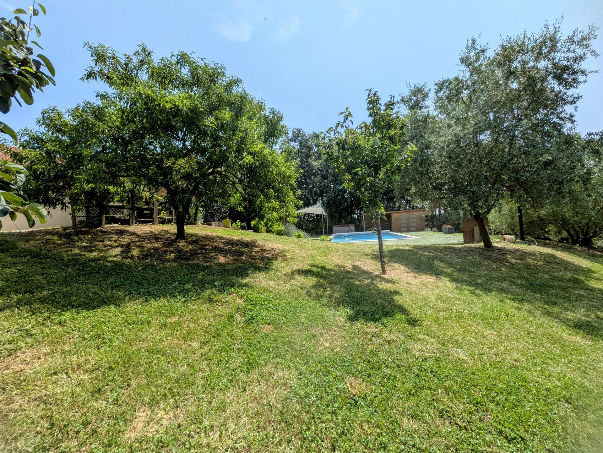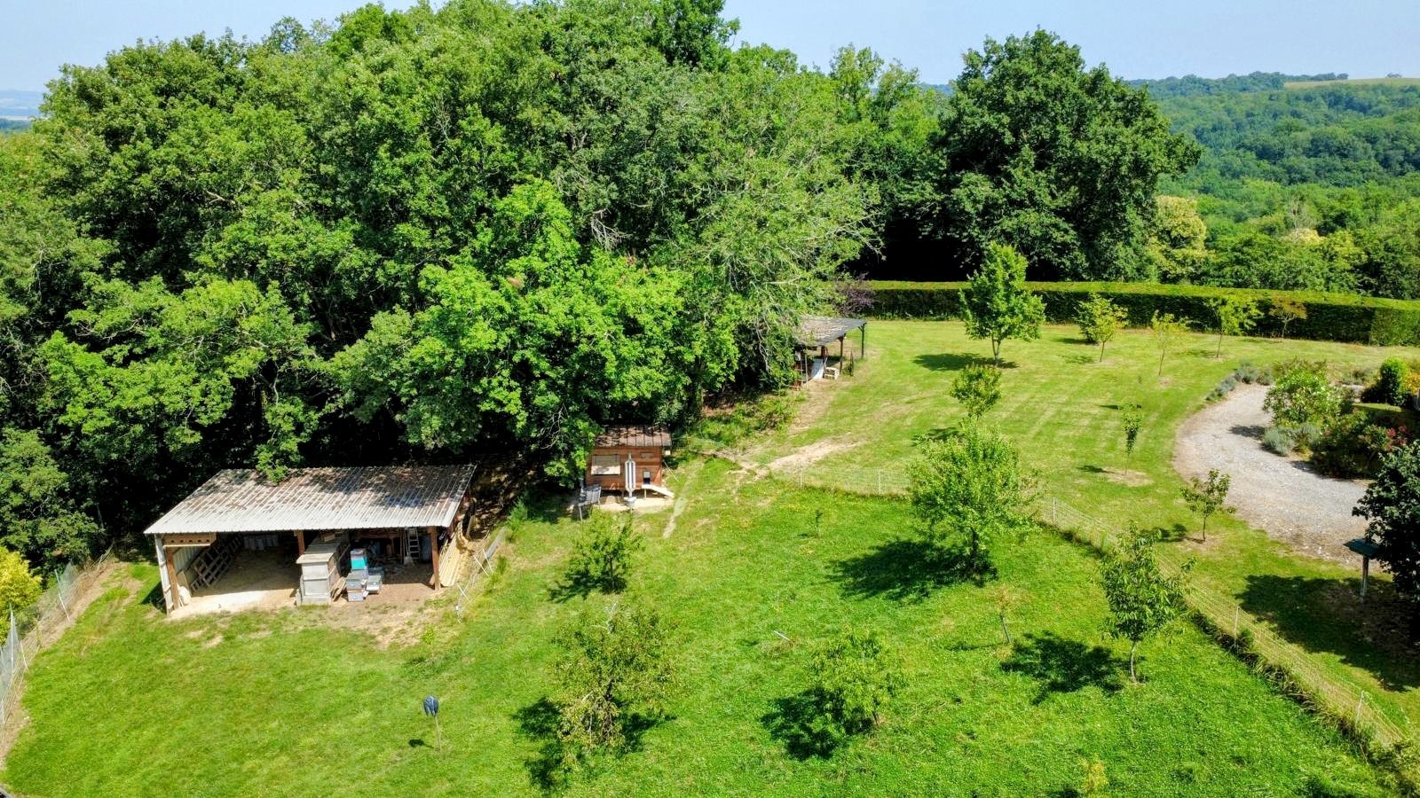 Cette maison, fonctionnelle, confortable et particulièrement bien entretenue, profite d'une piscine au sel, d'un poulailler, d'un espace potager avec un puits, d'une cabane en bois et d'un beau parc de 11596 m² entièrement clôturé ou ont été planté de nombreux fruitiers et une plantation de chênes truffiers certifiée INRA.