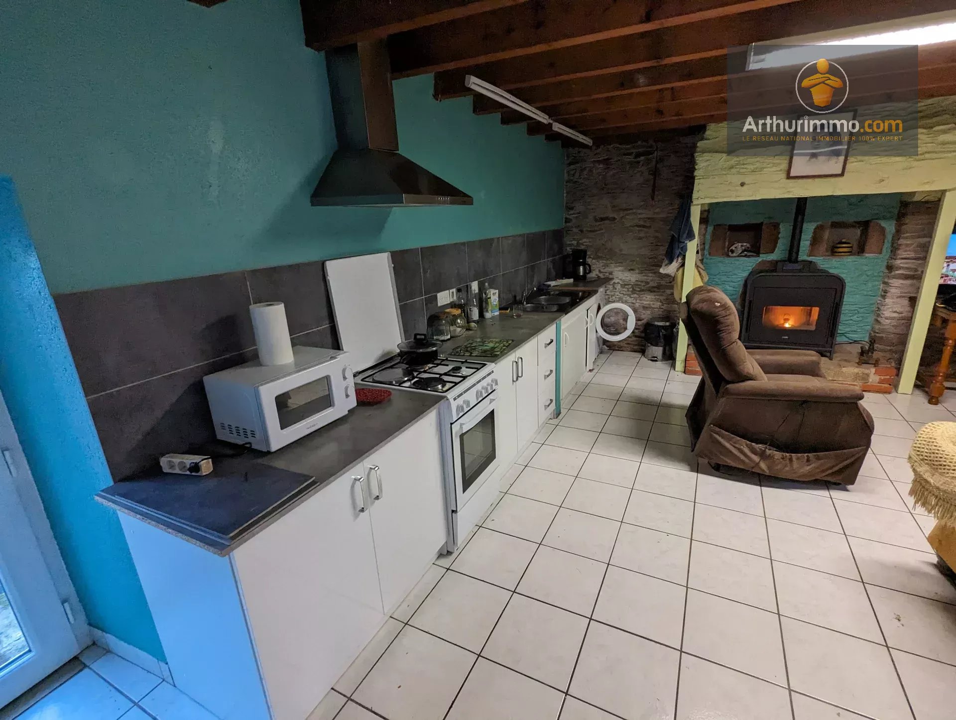 Maison comprenant au RDC, cuisine ouverte sur séjour avec poêle à granule, salle d'eau (grande douche neuve), WC neuf, dégagement.