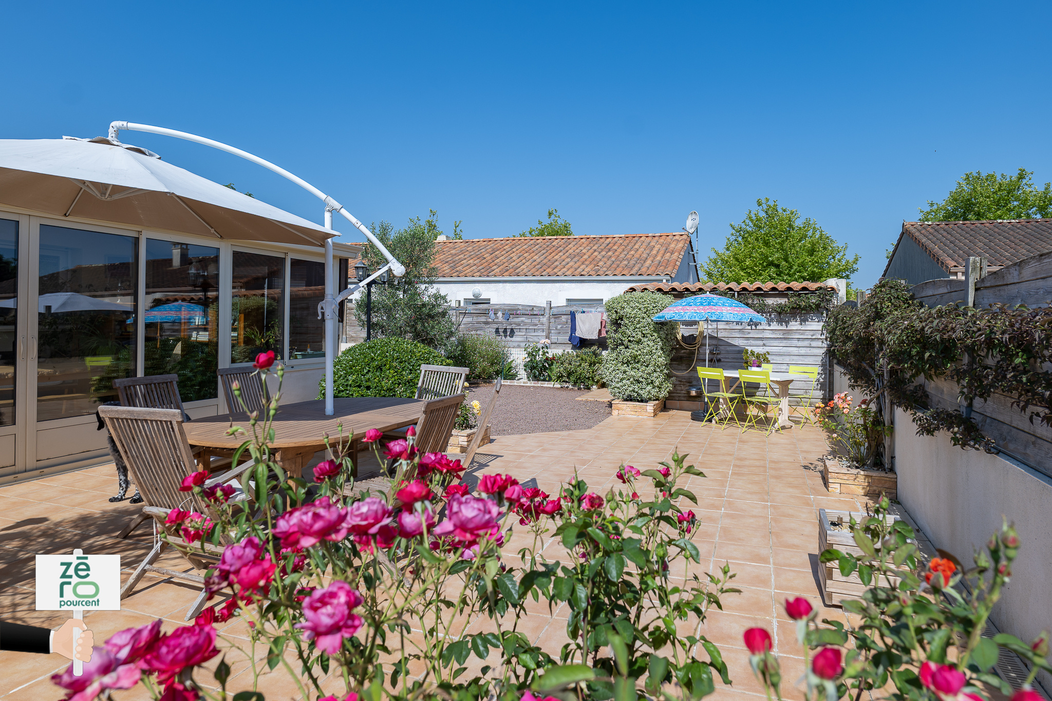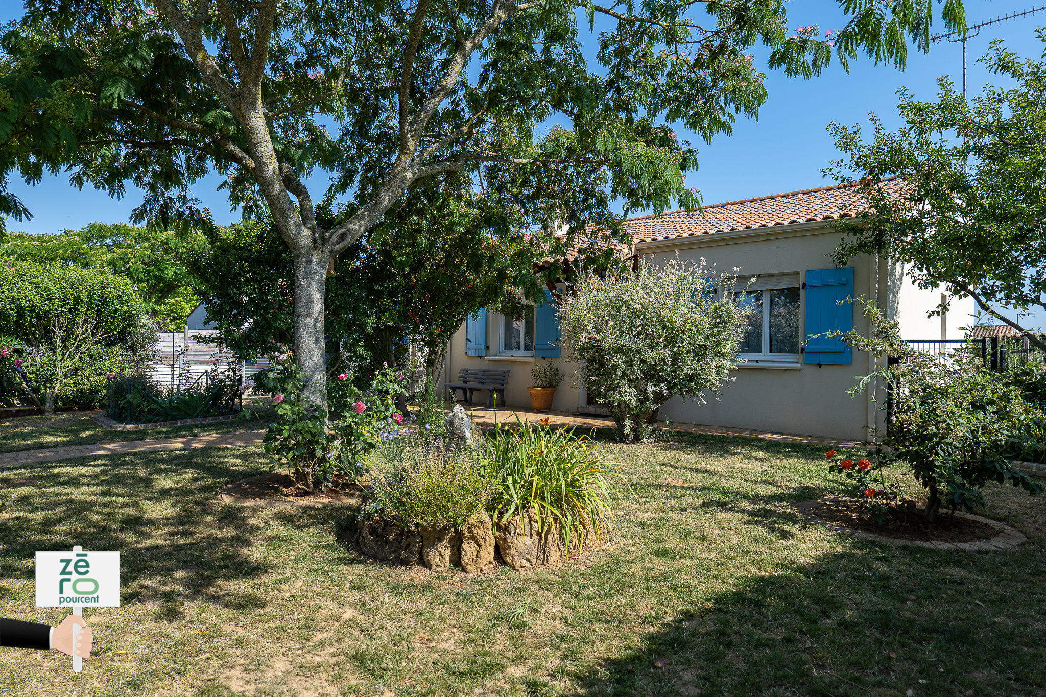 Idéalement située à Luçon, dans un quartier résidentiel paisible tout en étant proche de toutes les commodités (écoles, commerces, services), cette belle maison de plain-pied construite en 2008 séduira par sa luminosité, son agencement fonctionnel et son magnifique extérieur arboré et fleuri. Dès l'entrée, vous découvrirez un spacieux séjour-salle à manger baigné de lumière, prolongé par une cuisine ouverte entièrement aménagée et équipée, parfaite pour les moments de convivialité. Un salon indépendant, facilement transformable en troisième chambre ou en extension du séjour, offre une belle flexibilité selon vos besoins. Une arrière-cuisine pratique avec de nombreux rangements complète l'espace de vie. Côté nuit, deux chambres idéalement exposées disposent de grands placards intégrés. La salle d'eau offre un véritable confort avec une douche à l'italienne, une baignoire et un WC séparé. Une véranda entièrement habitable, lumineuse et chaleureuse, aujourd'hui aménagée en salon, vient parfaire cette maison accueillante. À l'extérieur, le charme opère immédiatement : une grande terrasse entretenue, deux cabanons, un espace barbecue pour les soirées d'été, et un coin potager attendent les amateurs de jardinage. Un large préau permet de stationner deux véhicules ou un camping-car en toute sécurité. Un atelier, avec mezzanine, peut quant à lui être transformé en studio d'appoint pour recevoir amis ou famille le temps d'un week-end. Le tout est entièrement clôturé pour votre tranquillité. Un bien rare, alliant confort, calme et praticité, à découvrir sans tarder ! STOP aux frais d'agences exorbitants, Vous souhaitez vendre votre bien, faites appel à ZEROPOURCENT, prestation fixe quel que soit le prix de votre bien, sans exclusivité et sans avance de frais. ZEROPOURCENT c'est l'immobilier autrement. - Annonce rédigée et publiée par un Agent Mandataire -