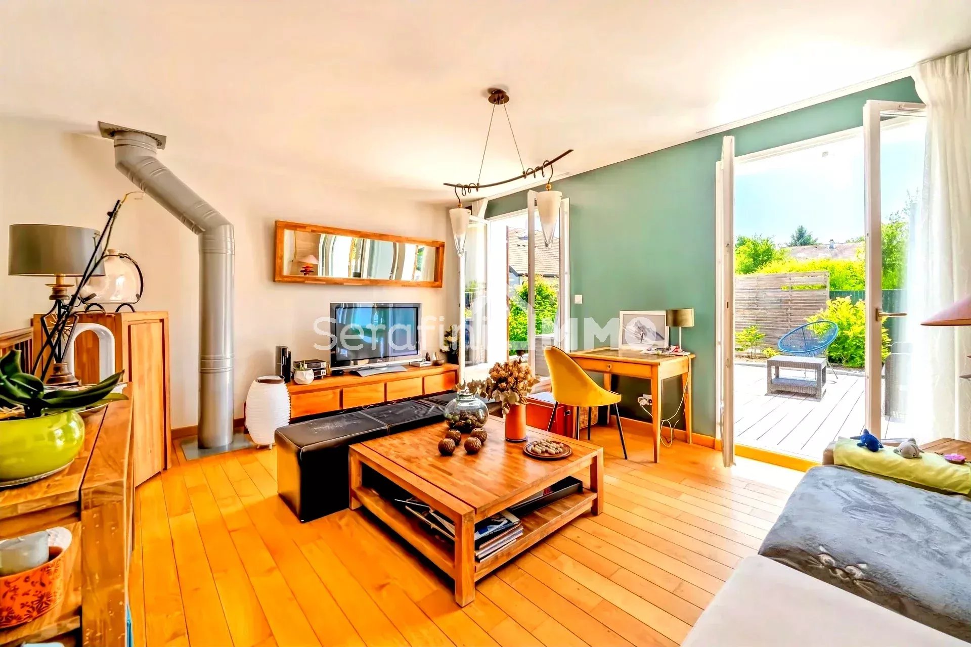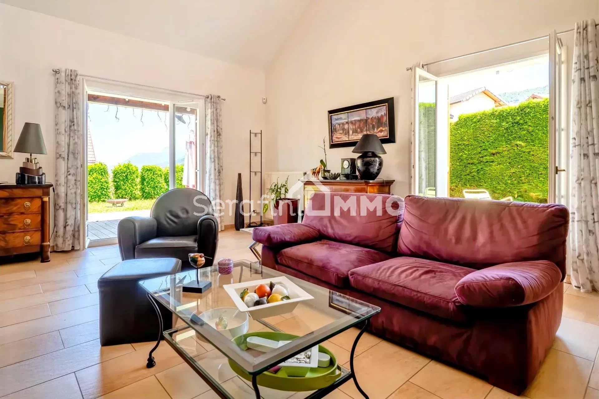 Dès l'entrée, vous serez séduit par le spacieux salon offrant une vue imprenable sur le jardin.