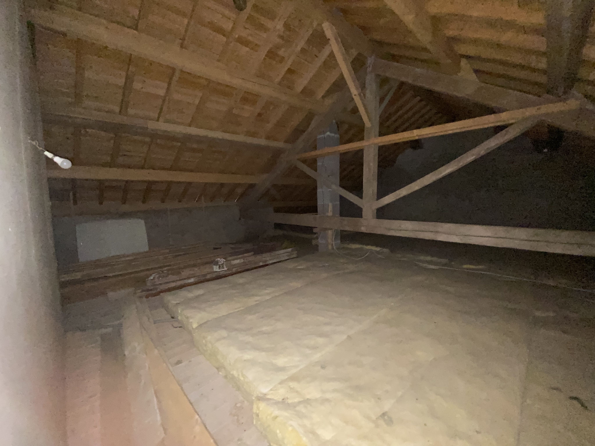 La bâtisse est composée d'une habitation principale de 131 m2 habitables, comprenant un hall d'entrée donnant sur le séjour, une cuisine ouverte, deux chambres, un WC, une salle d'eau ainsi qu'un balcon. Puis à l'étage, une chambre et des combles non aménagés (100 m2) . Enfin, une buanderie et une cave.