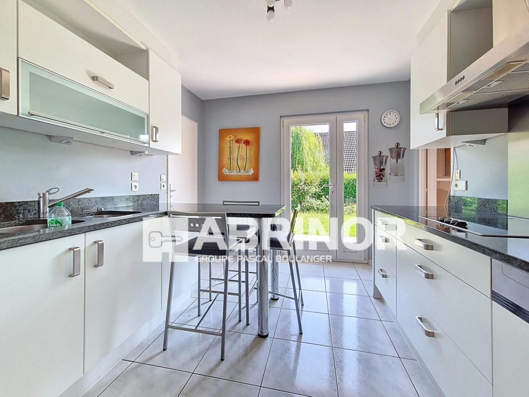 Cette maison offre une entrée, cuisine équipée, un vaste séjour avec cheminée insert, une buanderie, wc et garage. A l'étage, on dispose de 4 chambres, salle de bain, salle de douche et wc. Le jardin est agréable et le quartier est calme et proche de tout.