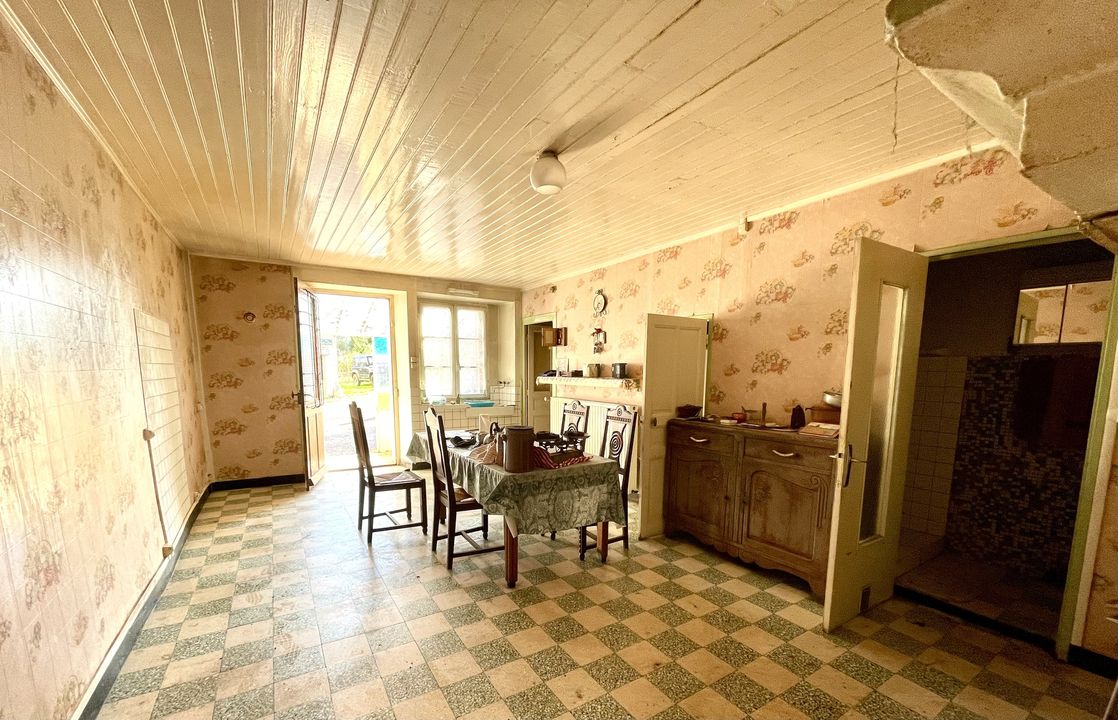 La maison comprend, au rez-de-chaussée, une cuisine, une salle à manger, un salon, une salle de bains, une ancienne cuisine et deux WC.