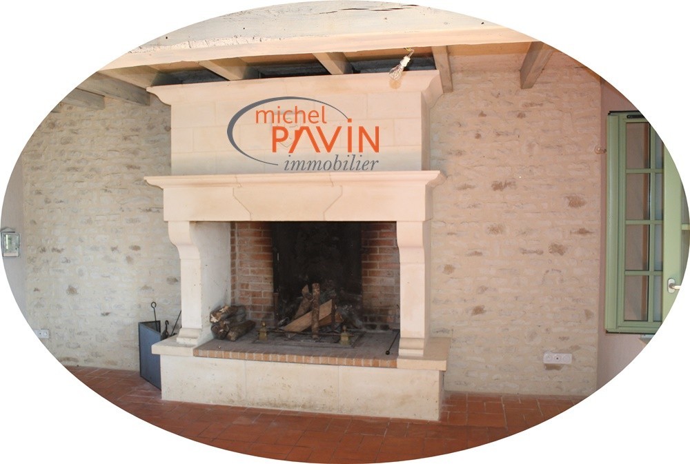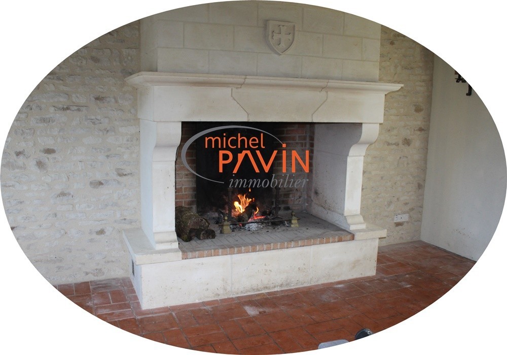 Une cheminée en pierre faite sur mesure il y a 10 ans, à double foyers, ouverte dans la pièce à vivre pour encore plus de cocooning fera le bonheur des enfants et des parents.