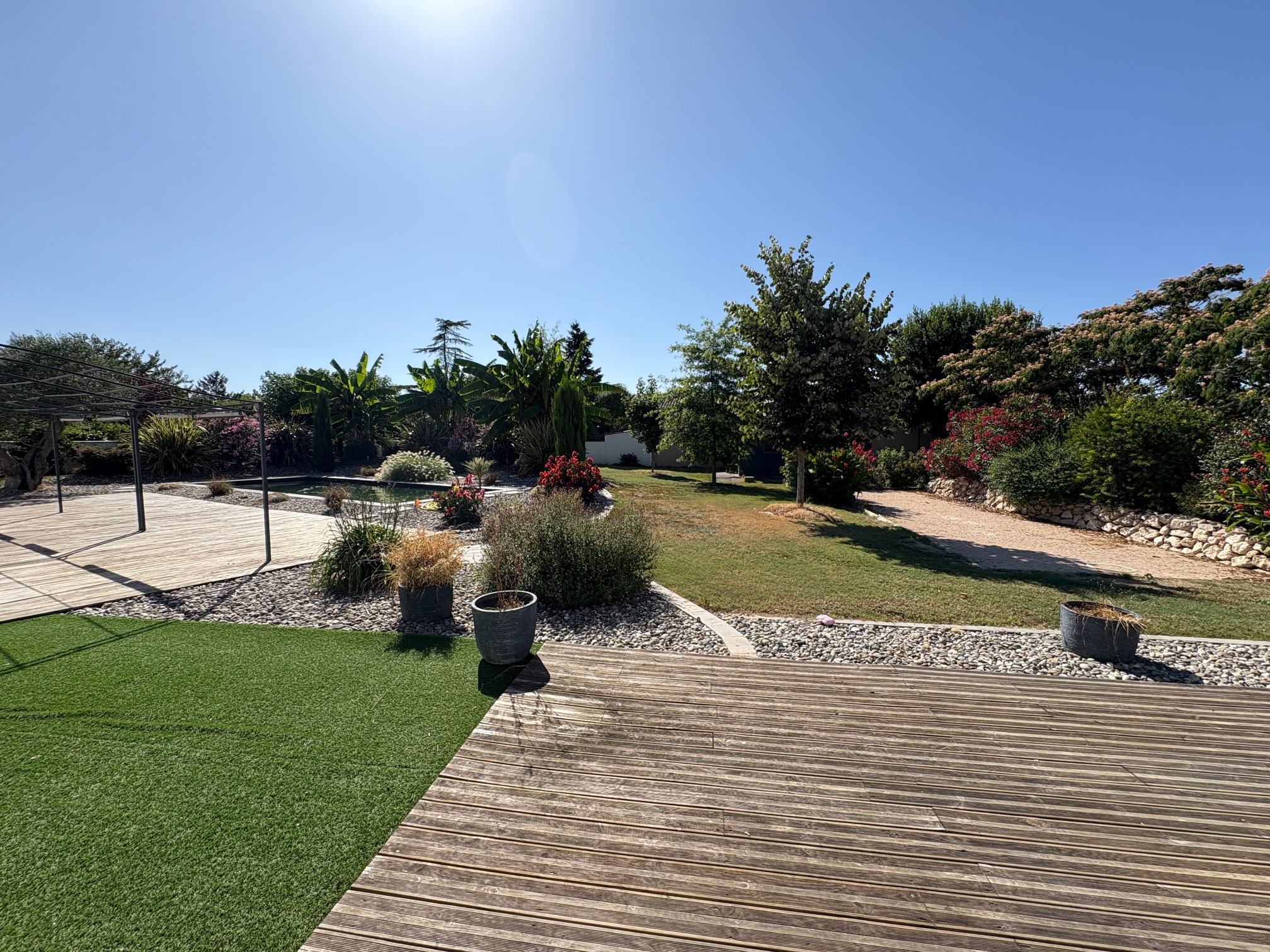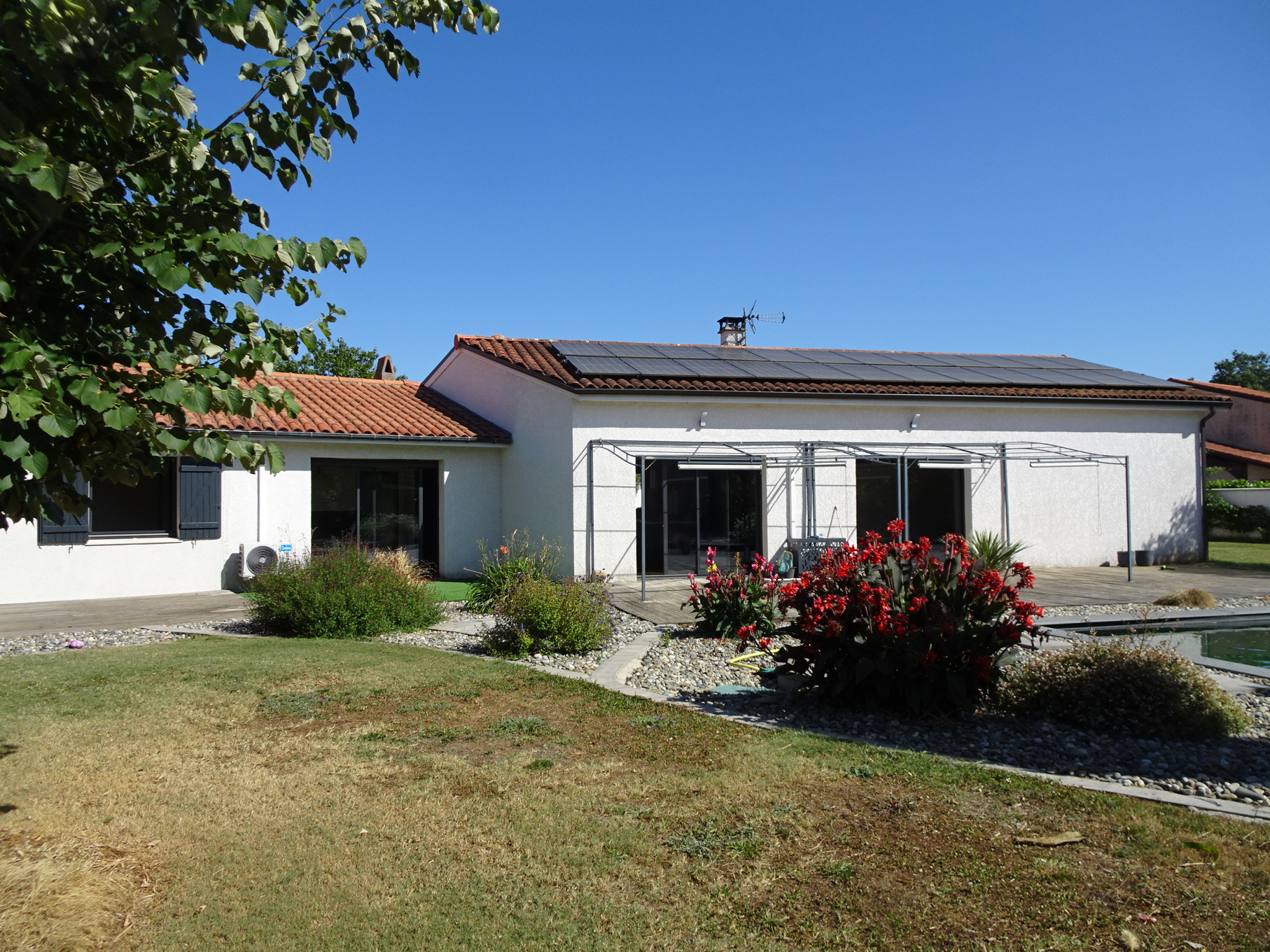 INTEGRAL IMMOBILIER / 16, Rue de la République 31270 Frouzins : - A 20min de Toulouse, Fonsorbes 31470, quartier résidentiel proche Lac de Bidot, secteur limite Seysses Frouzins, une maison individuelle plain-pied T5, de 170m2 hab, piscine, sur plus de 2000m2 de terrain (très arboré, avec puits et arrosage intégré). Construction traditionnelle en bon état d'entretien. Menuiseries Alu, clim réversible, poêle à bois, panneaux solaires, cuisine équipée, raccordement fibre, nombreux placards et rangements. Dépendance : abri jardin de 17m2. Assainissement via fosse septique. Villes proches : Cugnaux, Roques, Muret, Saint Lys, Tournefeuille, Colomiers, Blagnac... Les informations sur les risques auxquels ce bien est exposé sont disponibles sur le site Géorisques O6O INTÉGRAL IMMOBILIER FROUZINS - 16, Rue de la République - 31270 Frouzins