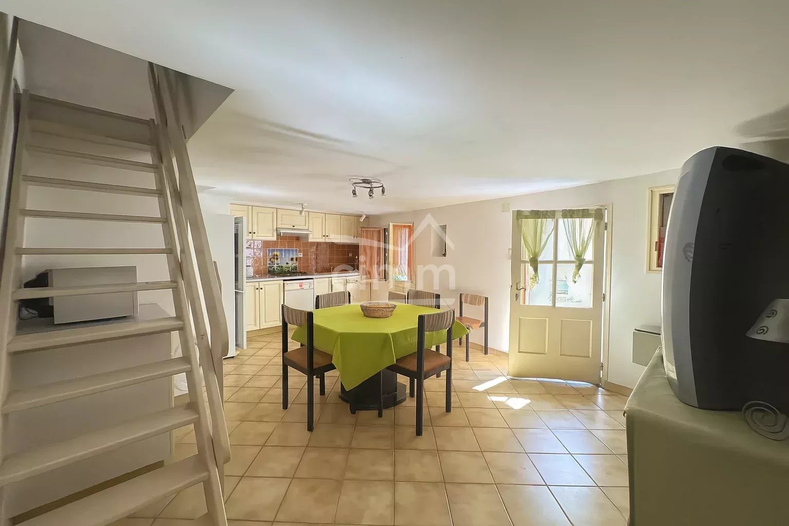 Il dispose au rez-de-chaussée d'une cuisine ouverte sur un séjour, et à l'étage, de deux chambres, d'une salle d'eau et de toilettes.