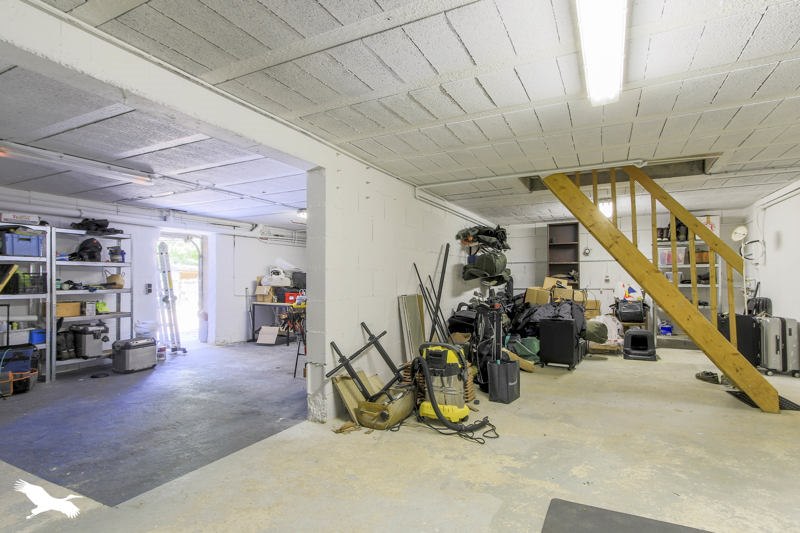 Sous sol total compartimenté en salle de sport, espace buanderie et garage.