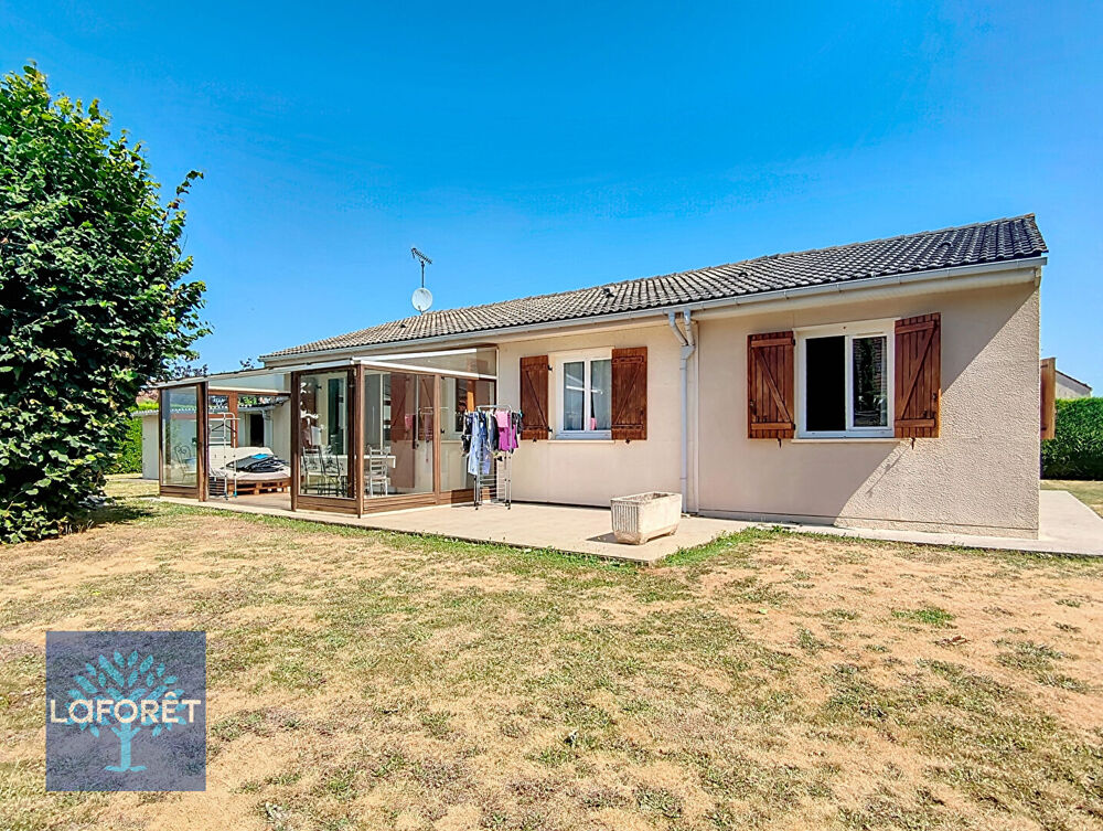Située dans un environnement calme et verdoyant, cette charmante maison de plain-pied offre un cadre de vie paisible, idéal pour une famille ou un couple à la recherche d'espace et de tranquillité. Elle se compose d'une entrée avec placards, d'un salon-salle à manger lumineux ouvrant sur une véranda, d'une cuisine indépendante aménagée, d'une salle d'eau avec WC ainsi que de toilettes séparées. La maison dispose de trois belles chambres, toutes au rez-de-chaussée. Le tout sur un grand terrain clos avec deux grands garages, idéal pour stationner plusieurs véhicules, stocker ou bricoler.