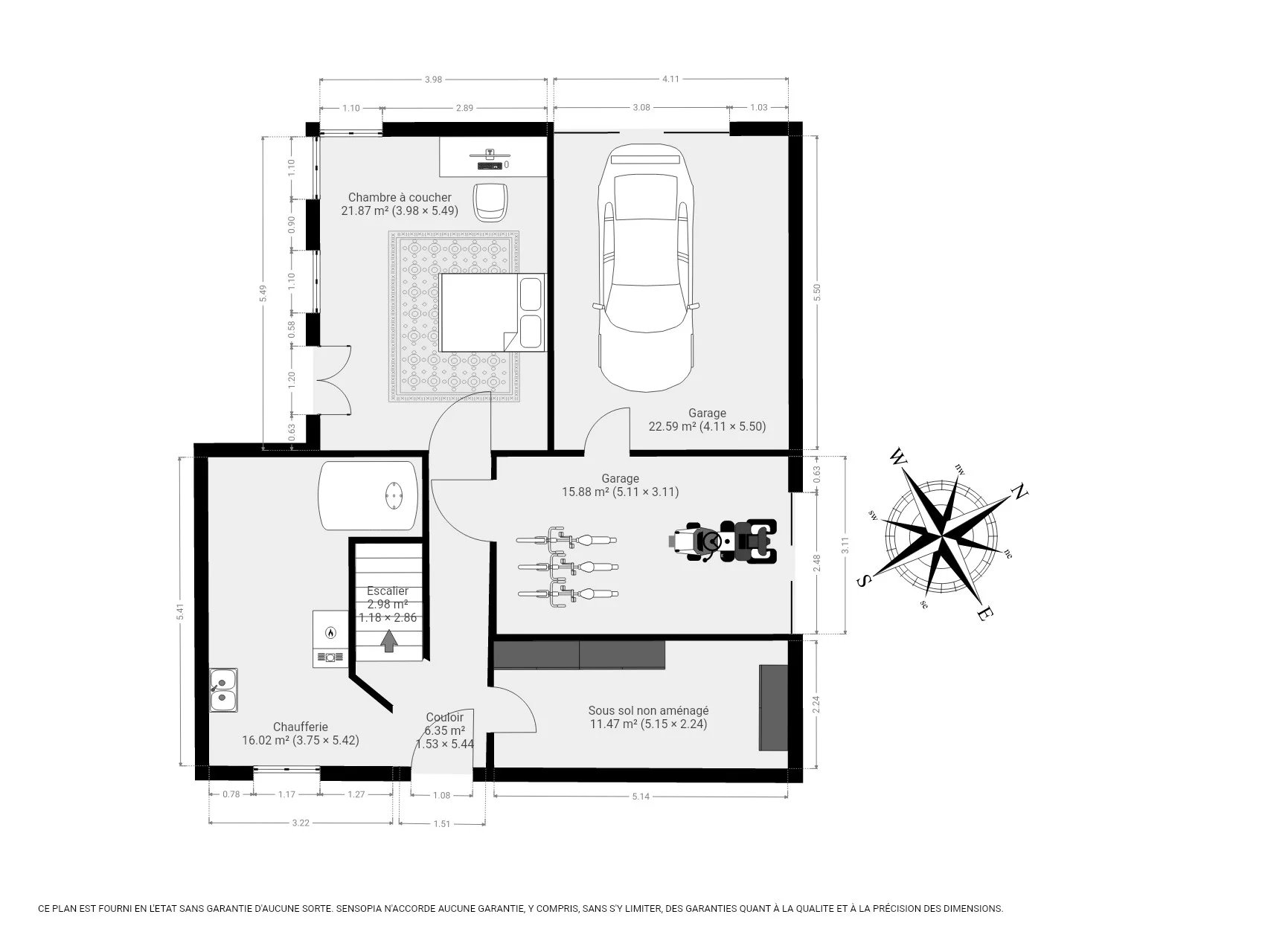 Rez-de-jardin : deux garages, une chaufferie, un espace de stockage ainsi qu'une pièce de 21 m² pouvant être aménagée en chambre indépendante, bureau ou espace de loisirs.