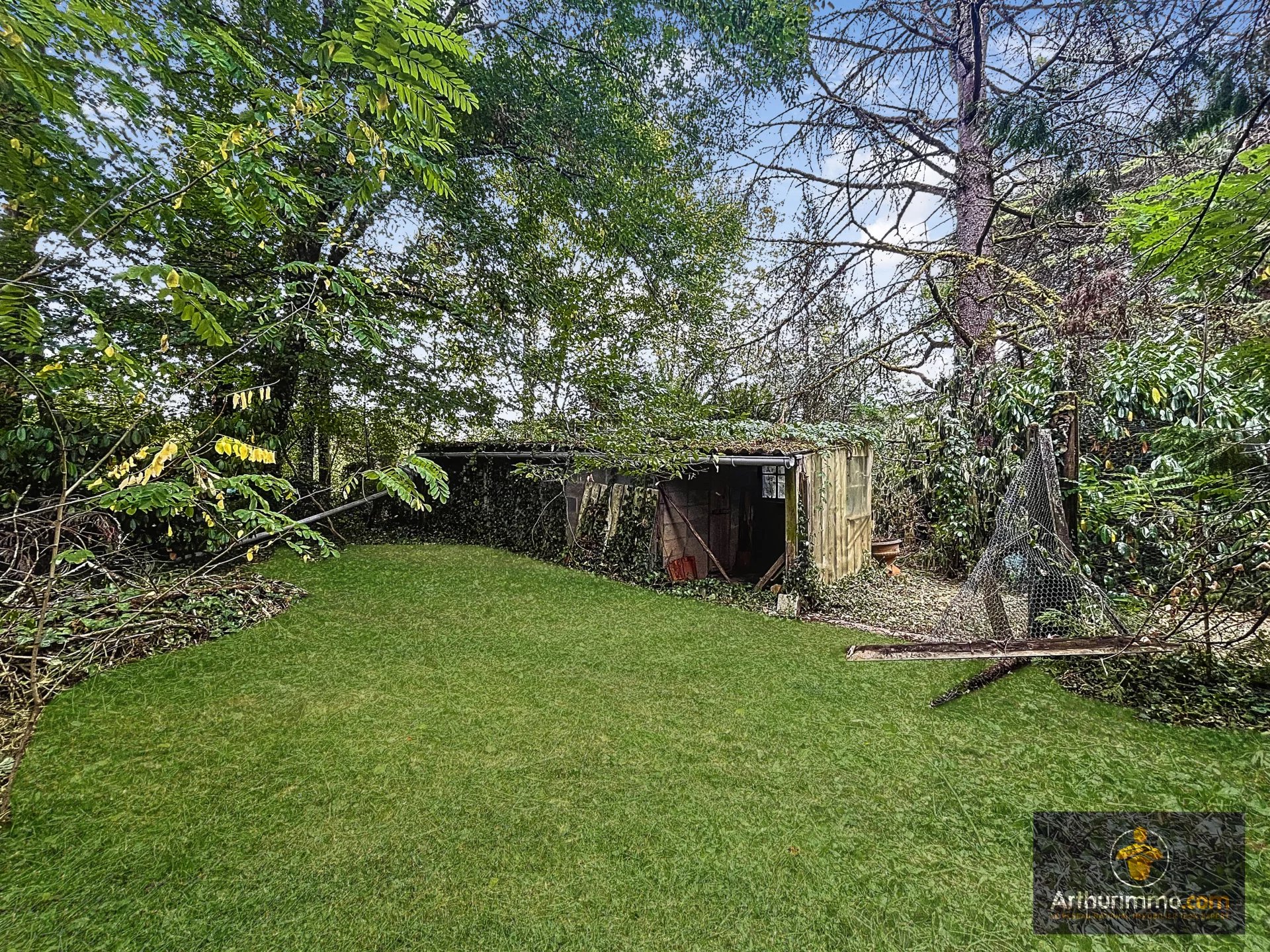 Le terrain plat et arboré de 3 500 m² est entièrement constructible et offre la possibilité d'être facilement divisé, grâce à une seconde entrée déjà existante.