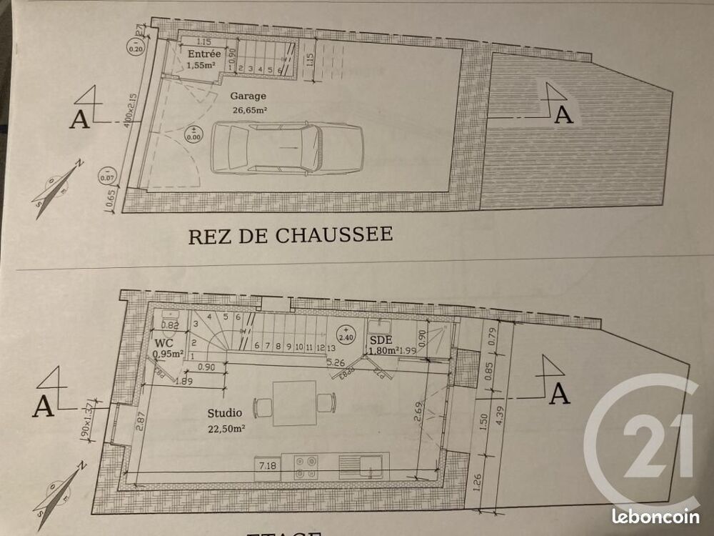 Au rdc création d'un garage de 26m2 et entrée du bien.