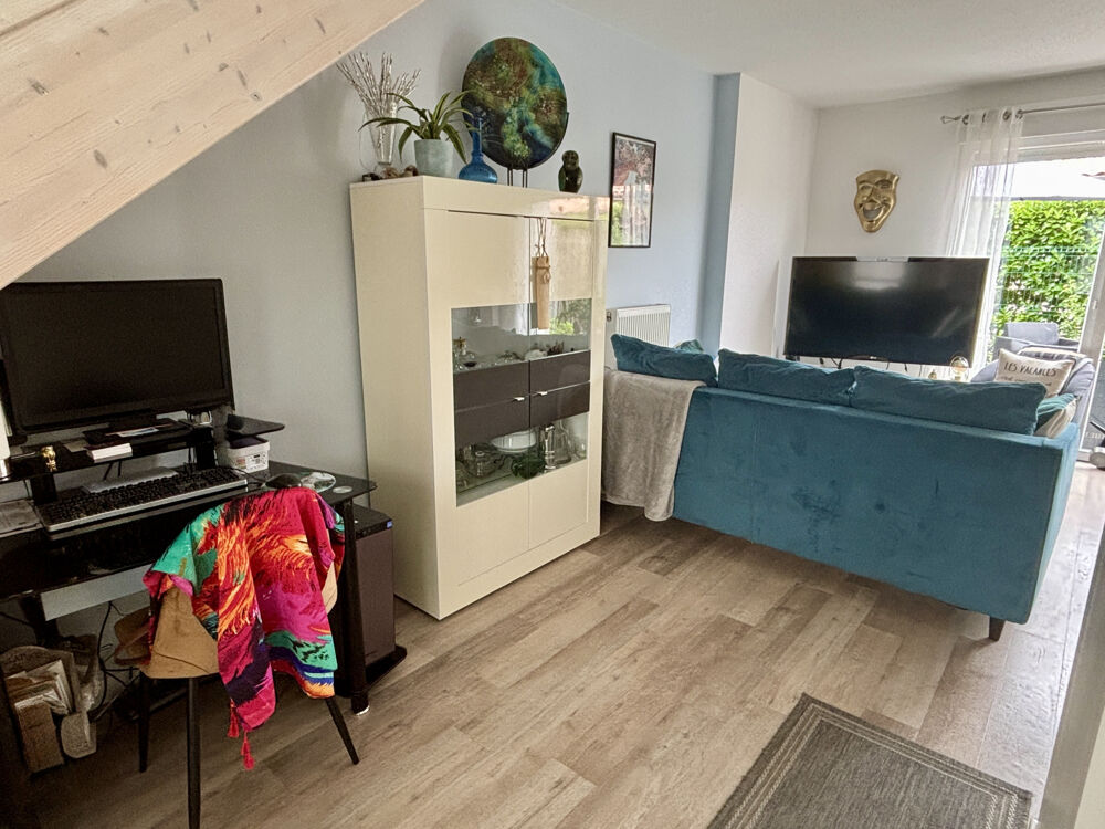 À l'étage, deux chambres confortables avec placards intégrés offrent de beaux volumes, tandis qu'une salle d'eau moderne avec WC vient parfaire l'agencement. La maison dispose également d'un garage fermé et d'une place de stationnement privative, un vrai plus dans ce secteur recherché.