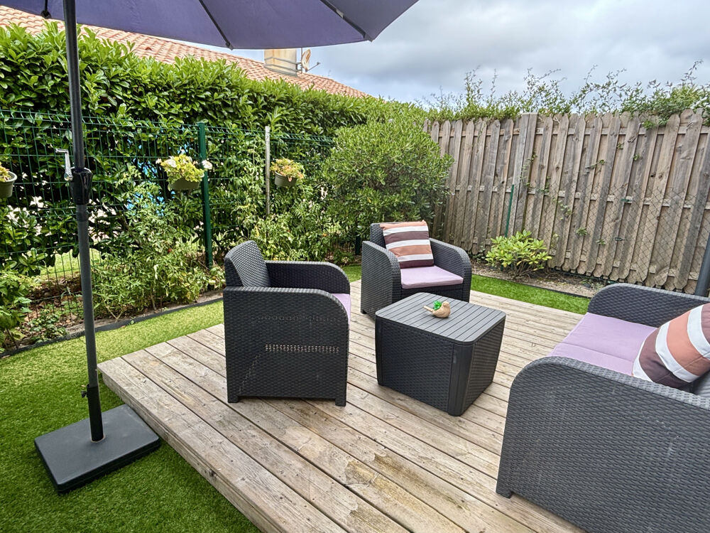 À quelques minutes du centre de La Teste-de-Buch, dans un quartier résidentiel prisé où règnent calme et qualité de vie, cette maison mitoyenne de 70 m2 construite en 2017 offre un équilibre idéal entre confort moderne et cadre naturel. Nichée au cœur du quartier Jean-de-Grailly, elle séduit par son architecture contemporaine, sa luminosité, et la fonctionnalité de ses espaces. Dès l'entrée, l'atmosphère est chaleureuse et accueillante. Le rez-de-chaussée s'ouvre sur une pièce de vie baignée de lumière avec une cuisine ouverte entièrement équipée où chaque détail a été pensé pour allier esthétique et praticité. Un grand WC indépendant et un cellier-buanderie complètent intelligemment ce niveau. L'ensemble donne directement sur une terrasse en bois et un charmant jardin privatif d'environ 25 m2, sans vis-à-vis, parfait pour profiter des journées ensoleillées du Bassin d'Arcachon.