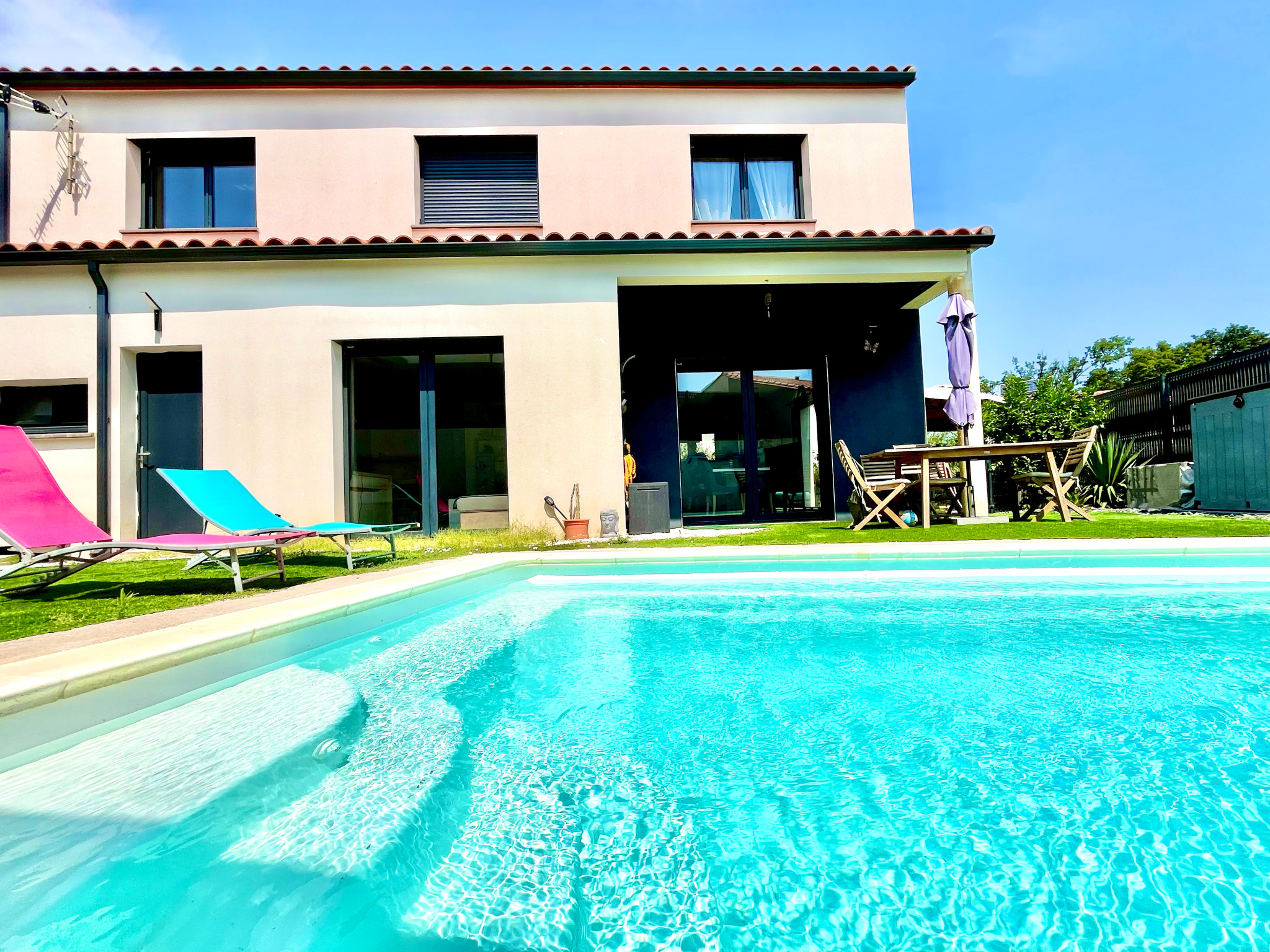 A VENDRE- NOUVEAUTÉ ! POLLESTRES - À 5 minutes de Perpignan , dans une ville prisée pour sa situation centrale, nous vous proposons cette belle villa T4 , construite en 2019, avec une agréable piscine et une terrasse ensoleillée tout au long de la journée ! D'une superficie habitable de plus de 114m2, élevée d'un étage sur rez de chaussée , en 3 faces sur de 332m2 terrain.