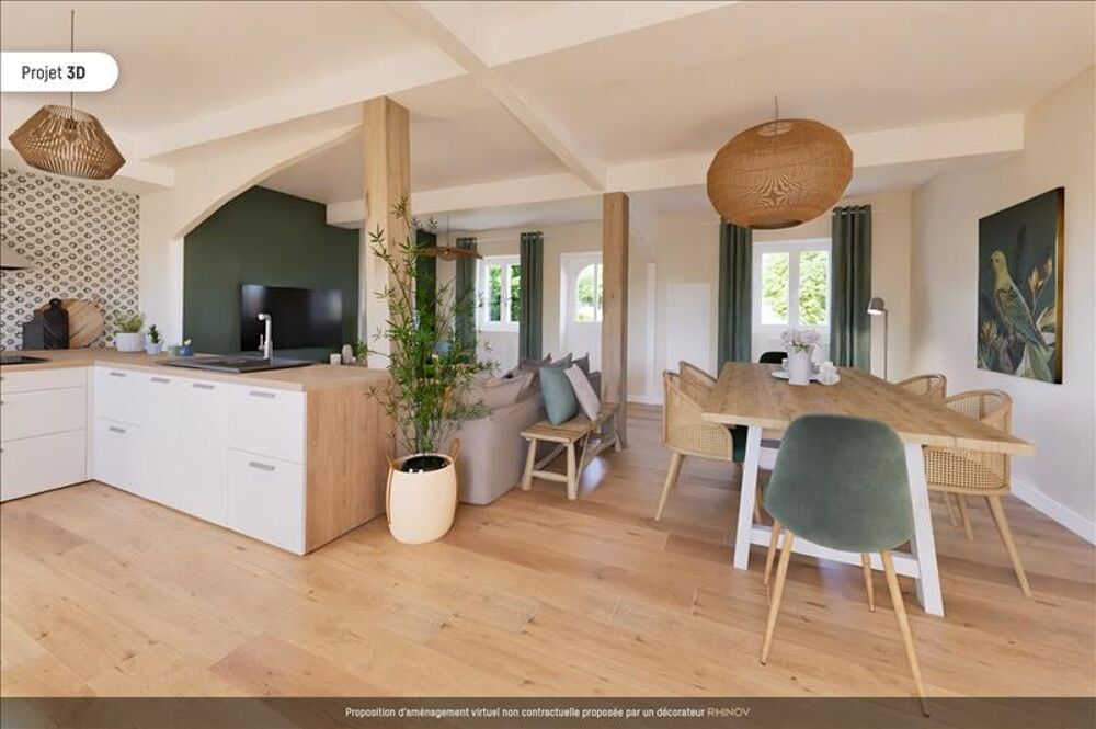Piéce de vie chaleureuse, cuisine ouverte, loggia, salle de bains et salle d'eau, trois chambres avec dressing et bureau.