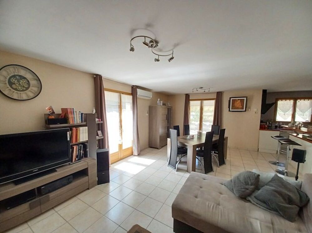 SAINT REMY DE MAURIENNE Cette maison récente de plain-pied, d'une superficie habitable de 100 m², offre une belle vue dégagée et ensoleillée. Elle dispose d'une terrasse équipée avec un store, le tout sur un terrain de 733 m².
