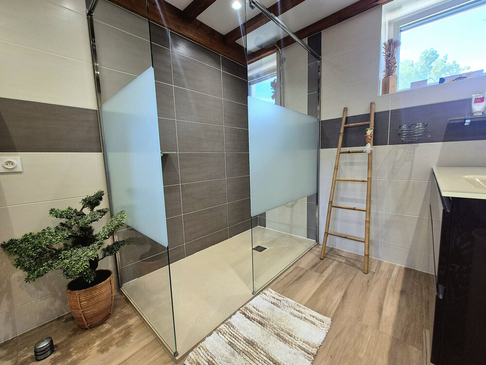 Elle se compose d'une grande cuisine indépendante toute équipée, d'un spacieux salon-salle à manger lumineux avec cheminée et climatisation réversible, tous deux ouverts sur une agréable véranda chauffée, idéale pour profiter de la luminosité en toute saison.