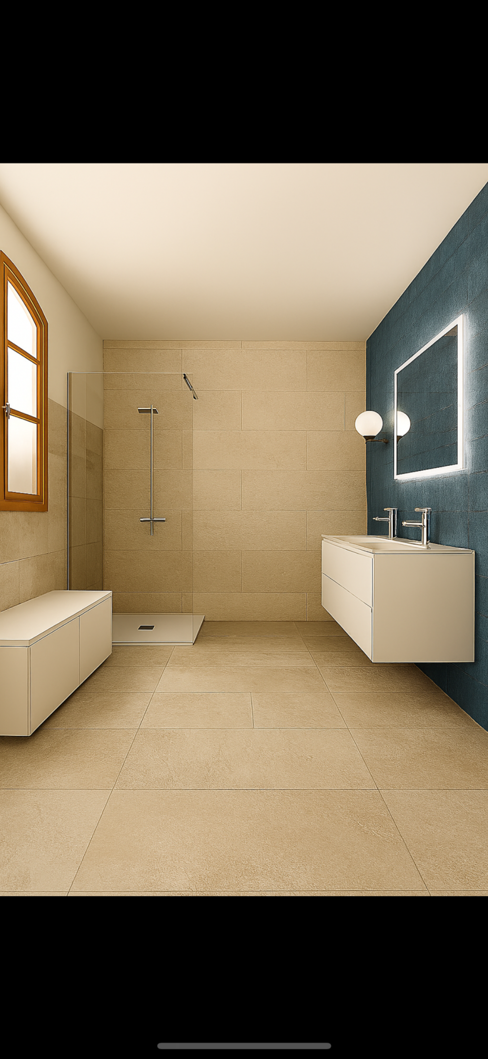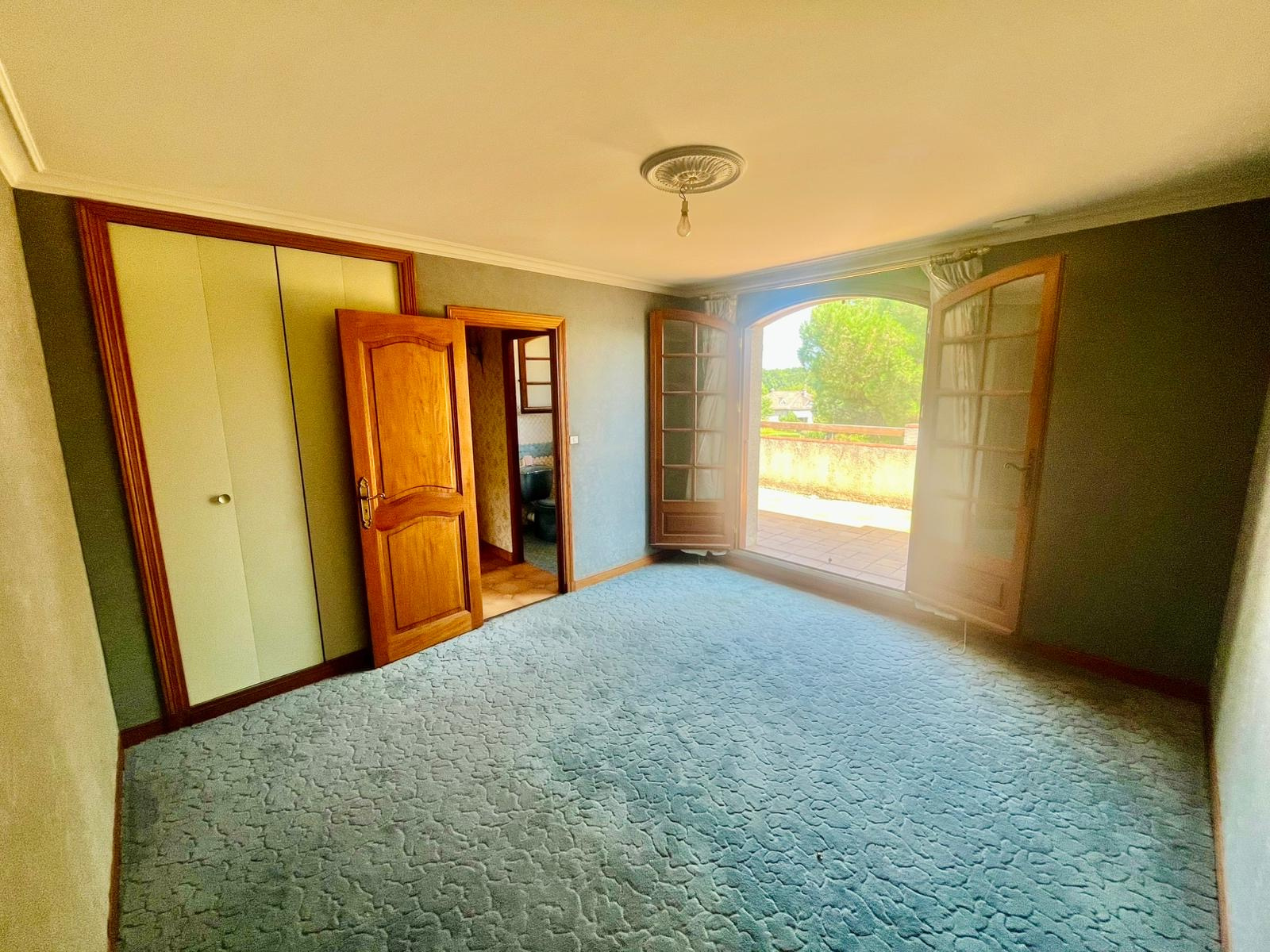 A l'étage une grande chambre avec une belle terrasse et sa salle de bains et un wc indépendant
