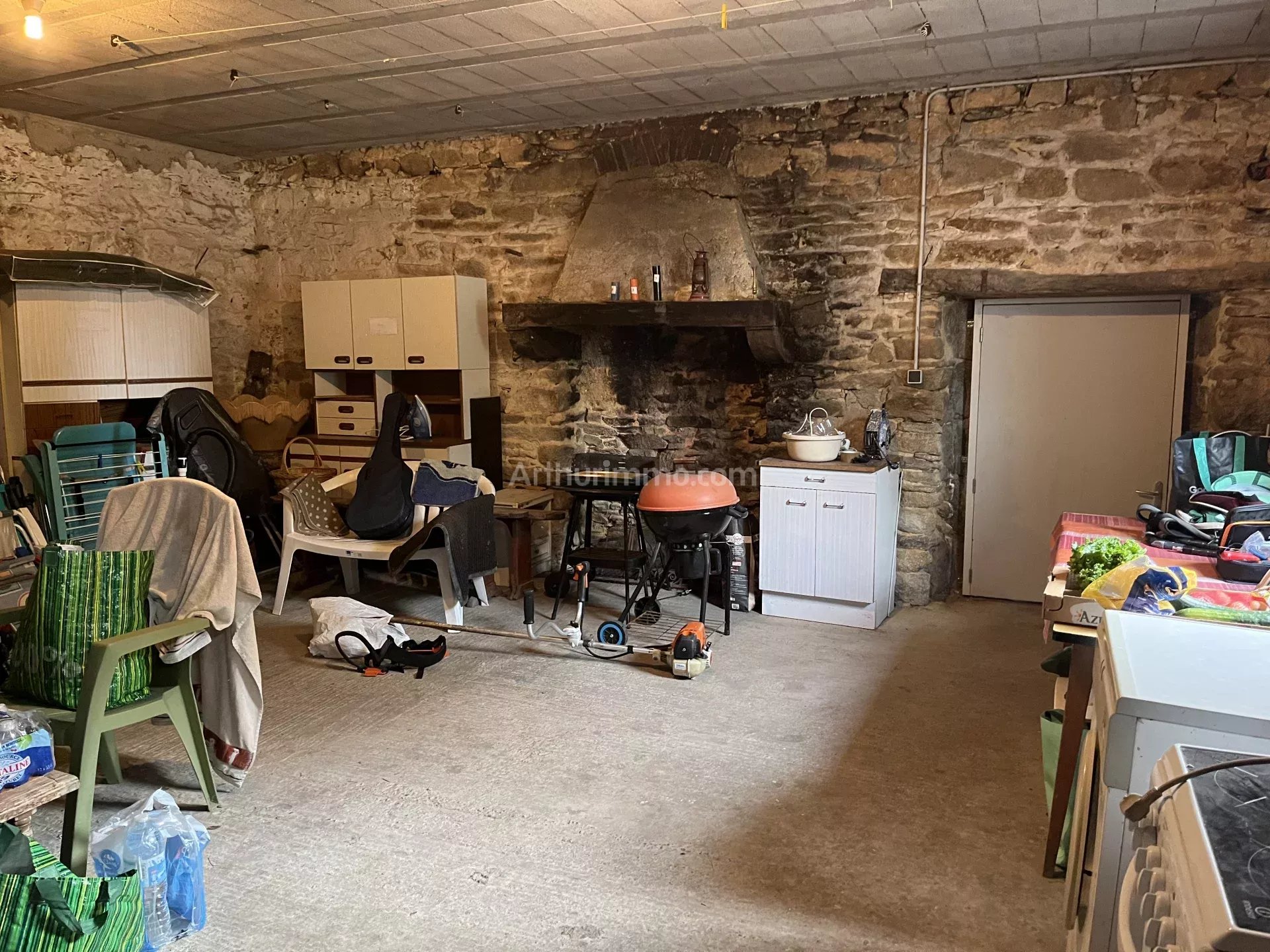En prolongement: un grande pièce à usage de débarras et buanderie avec cheminée, et au dessus grenier sur dalle béton.
