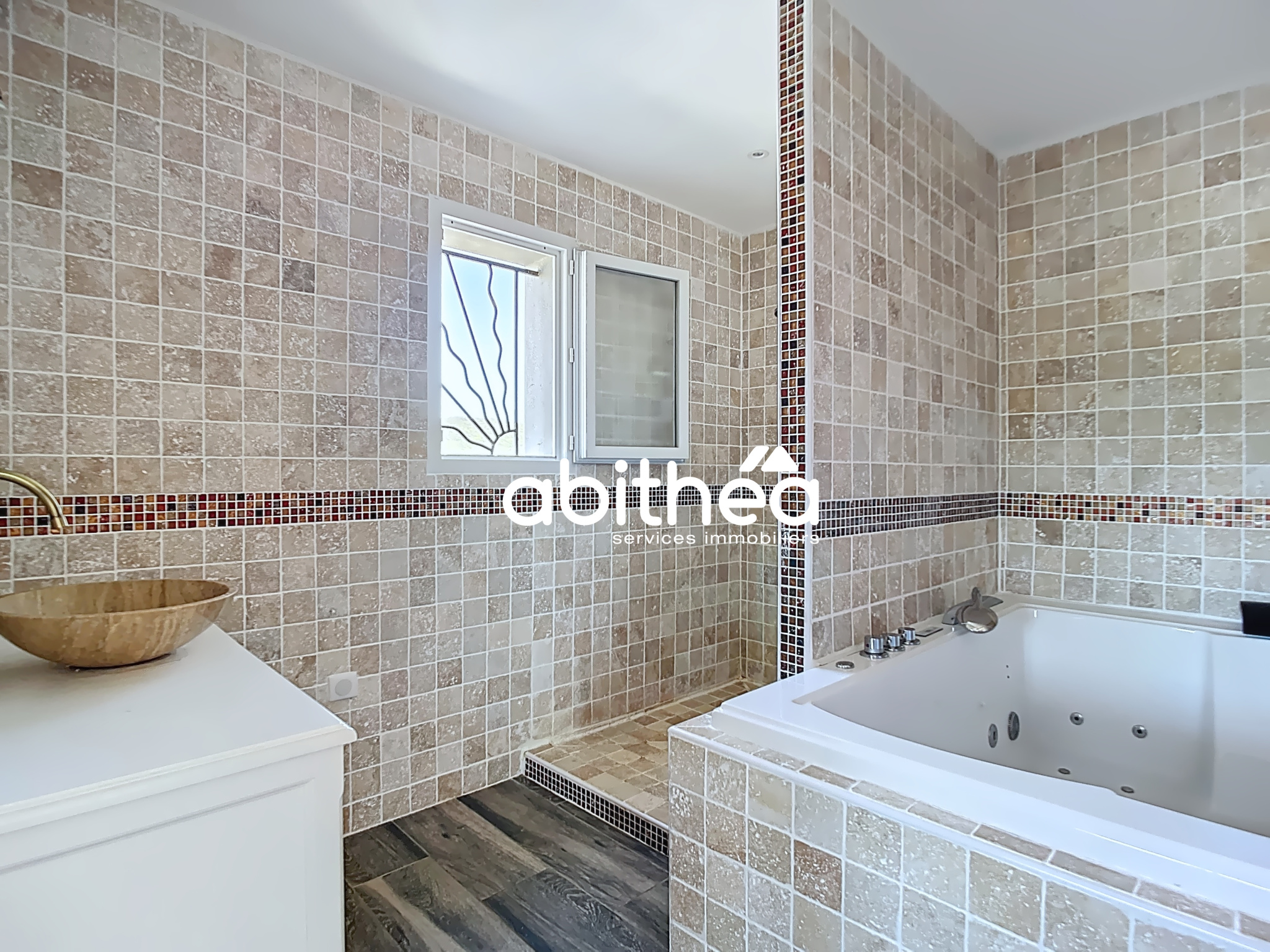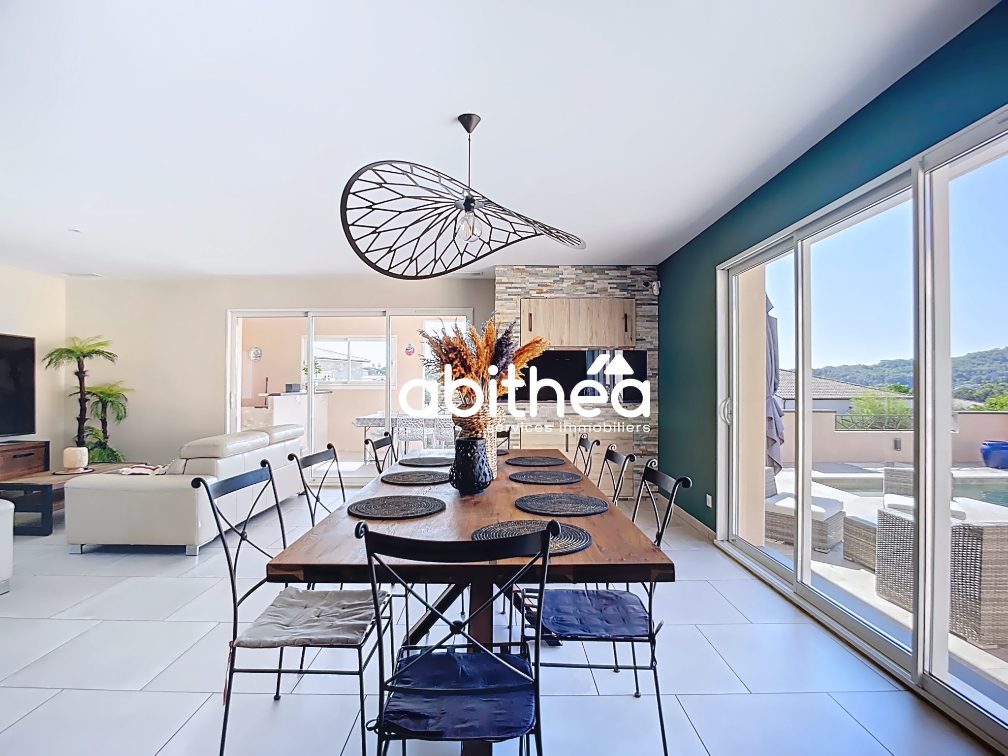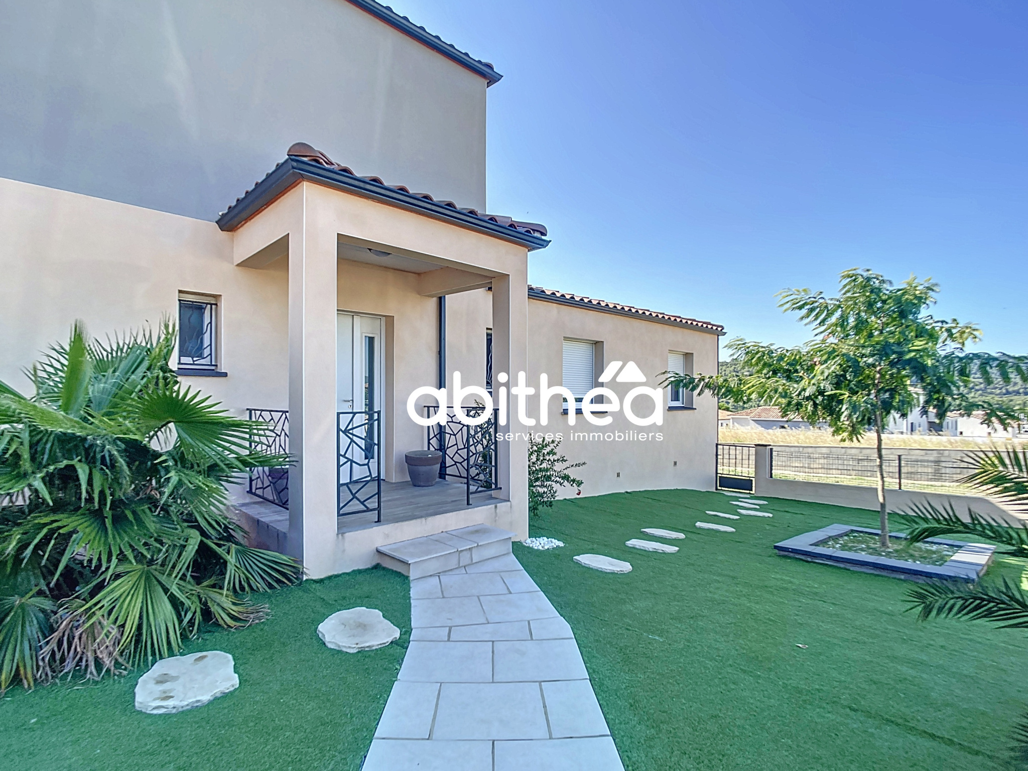 À VENDRE ABITHÉA VILLA CONTEMPORAINE D'EXCEPTION À CESSENON-SUR-ORBVilla 4 faces 181 m2 habitables 5 chambres dont 1 au rdc Piscine chauffée & jacuzzi Prestations haut de gamme DPE A