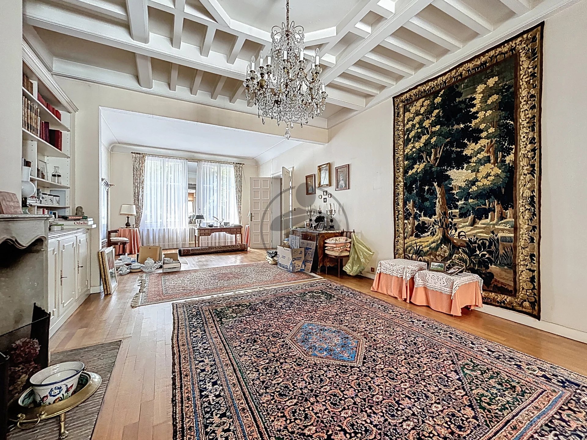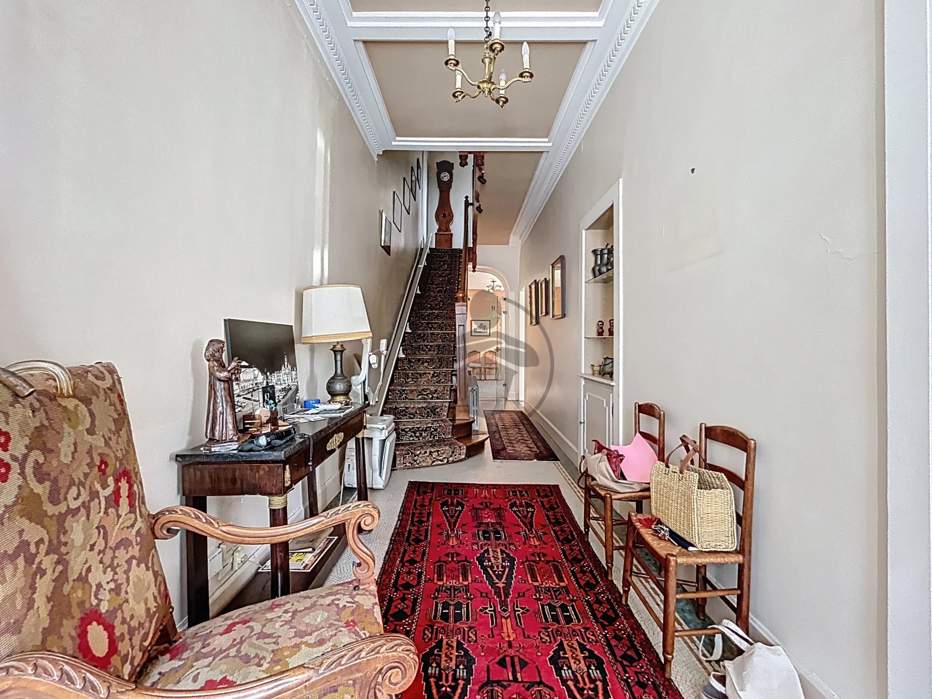 Dès l'entrée, vous serez conquis par ses volumes et ses prestations d'époque : une élégante entrée dessert une double pièce de vie lumineuse avec parquet, moulures au plafond et cheminée en marbre, alliant authenticité et élégance.