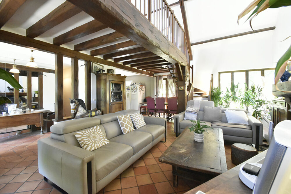Belle propriété idéalement situé en lisière de foret et d'une zone naturelle.elle se compose d'une entrée donnant sur un séjour cathédrale avec belle cheminée et cuisine américaine 1 chambre et salle de douches en rez de chaussé, wc,