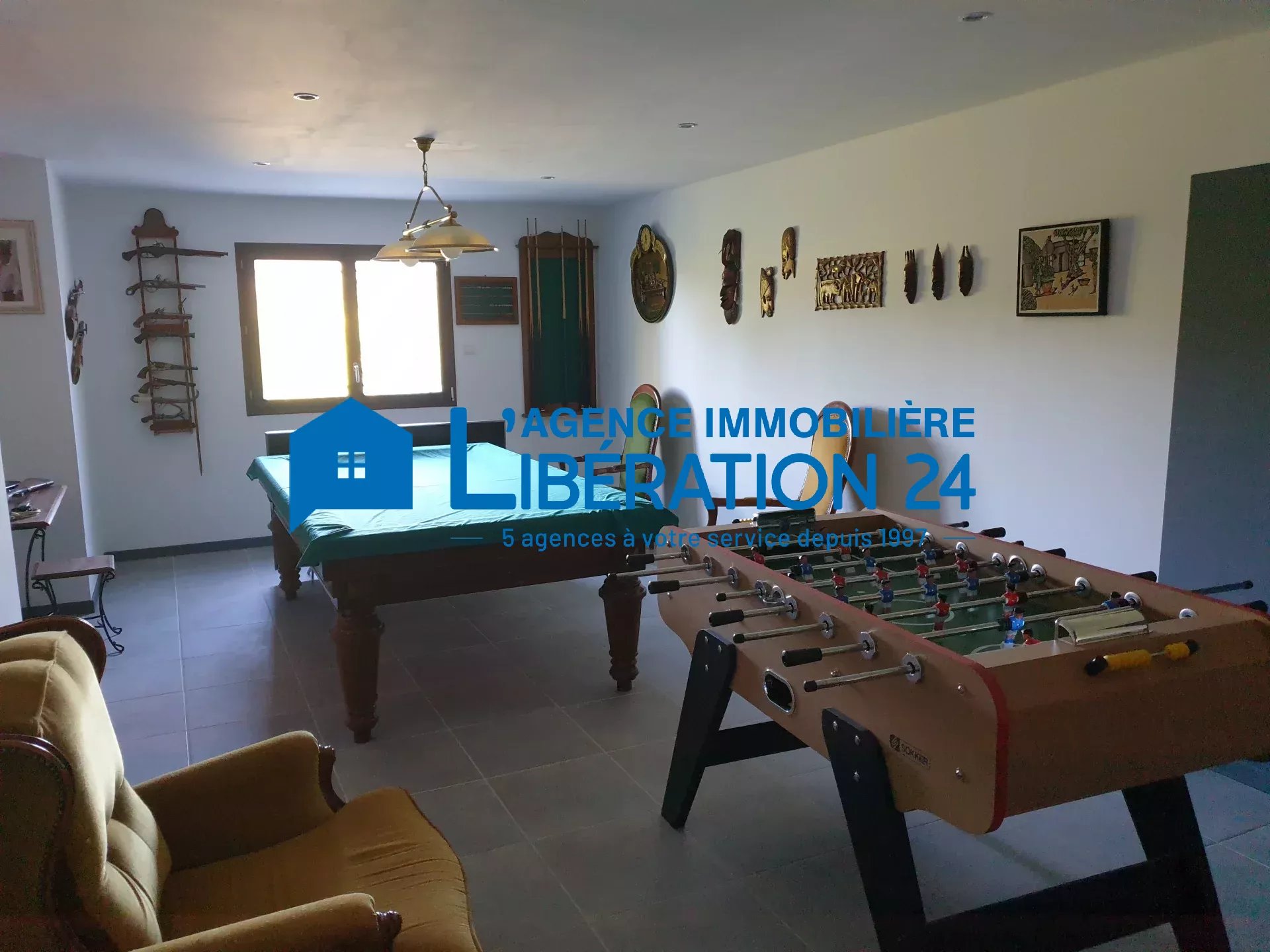 Au sous-sol, une pièce de 27m² peut servir de salle de jeux, voir de chambre supplémentaire.