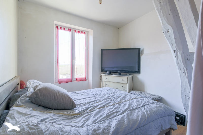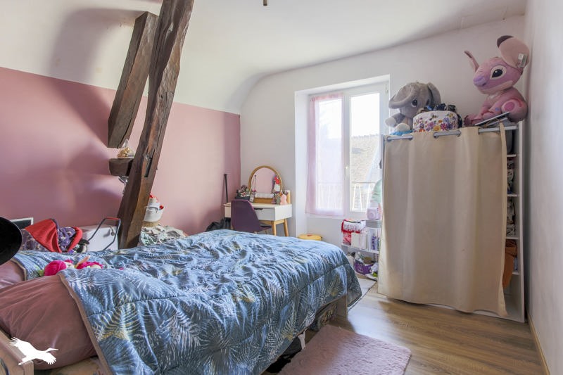 Maison en pierre vous offrant : séjour avec cuisine ouverte, 3 chambres, salle de bains.