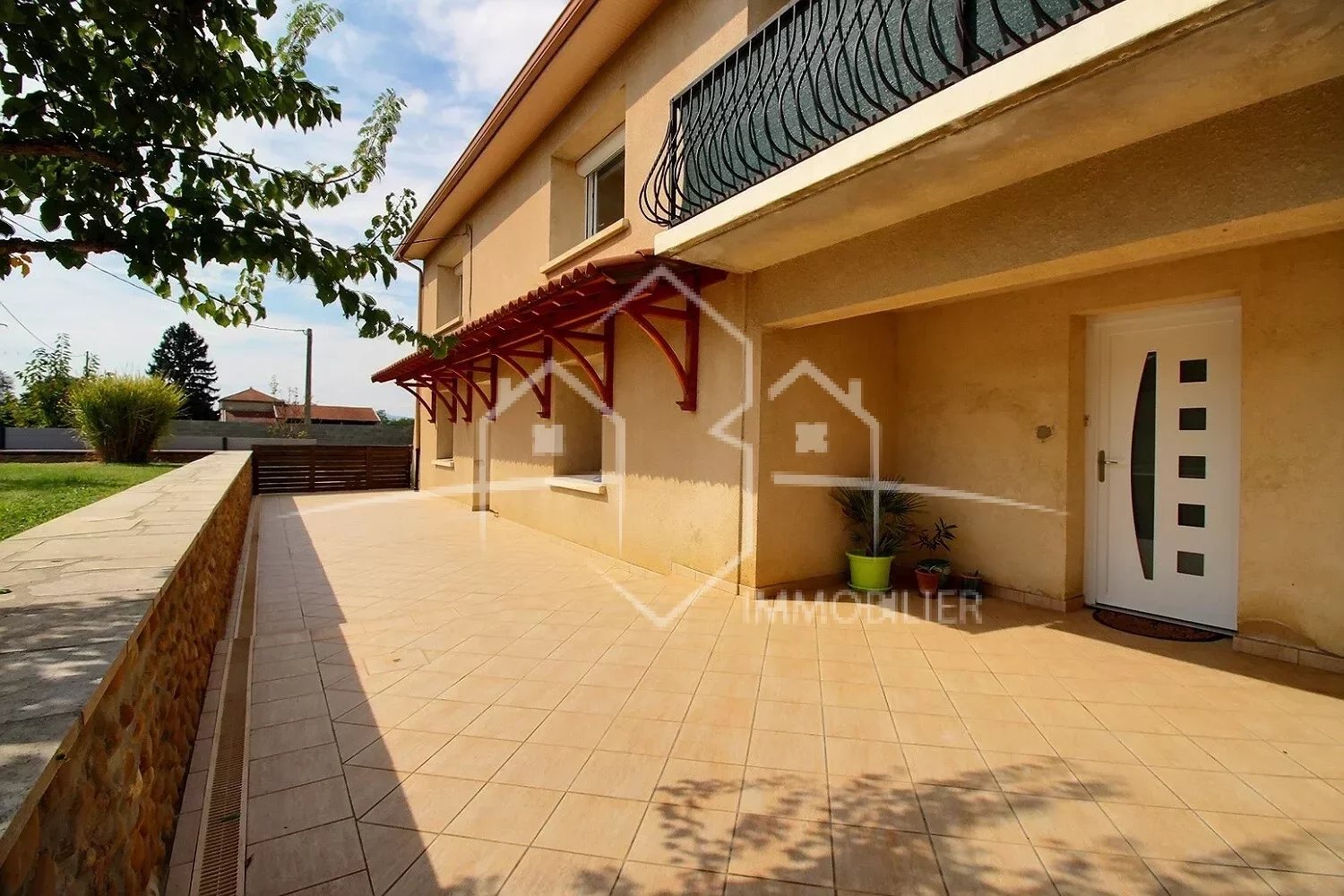 - Une grande terrasse carrelée,
