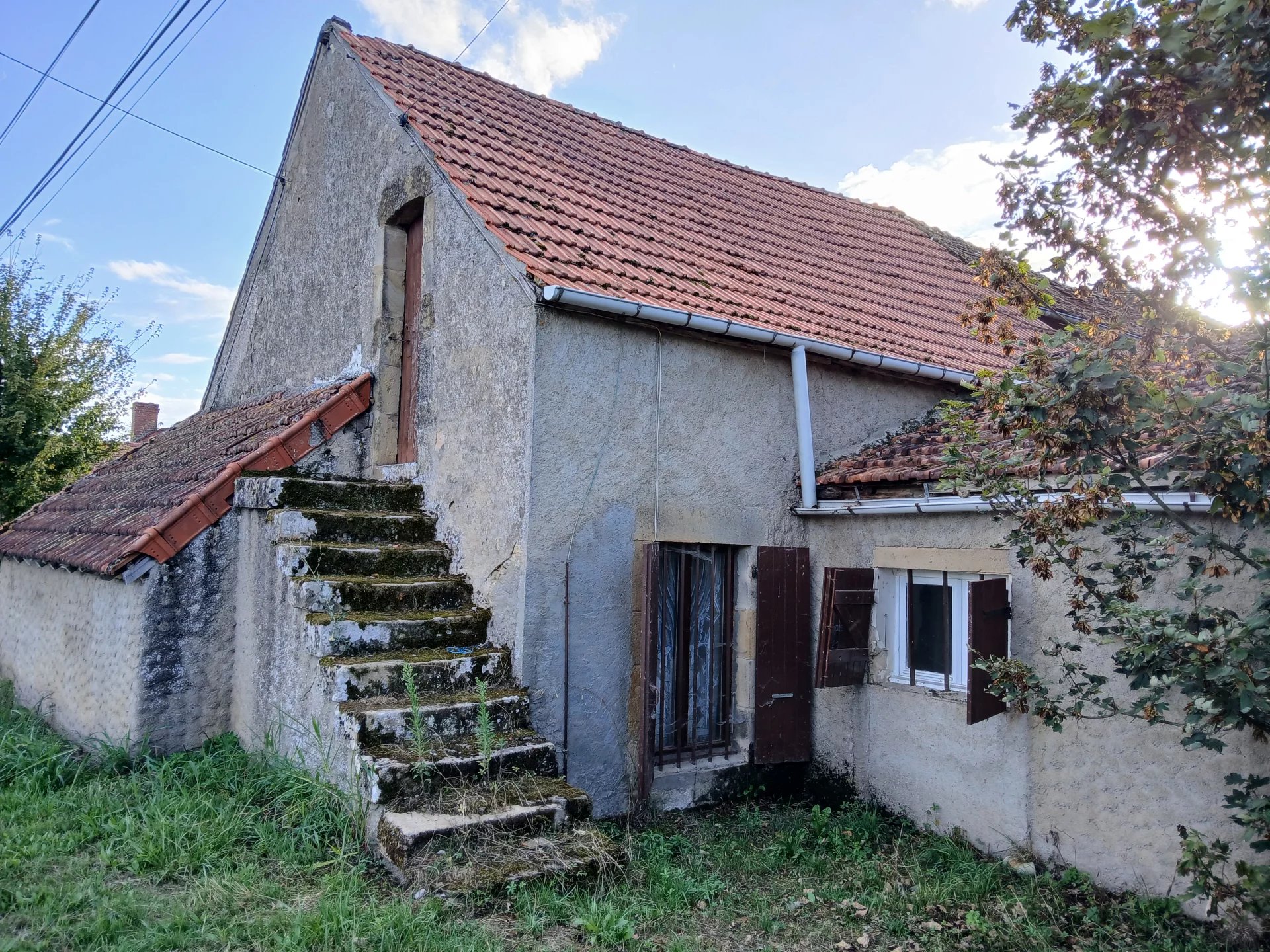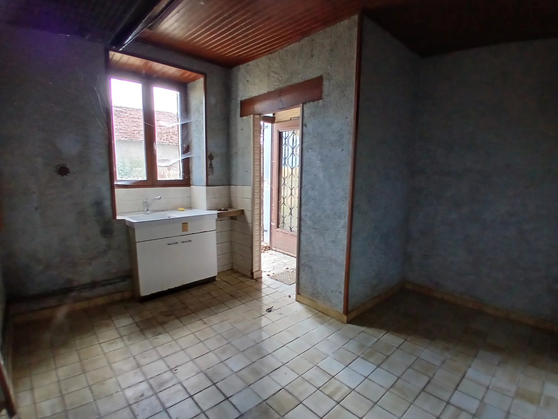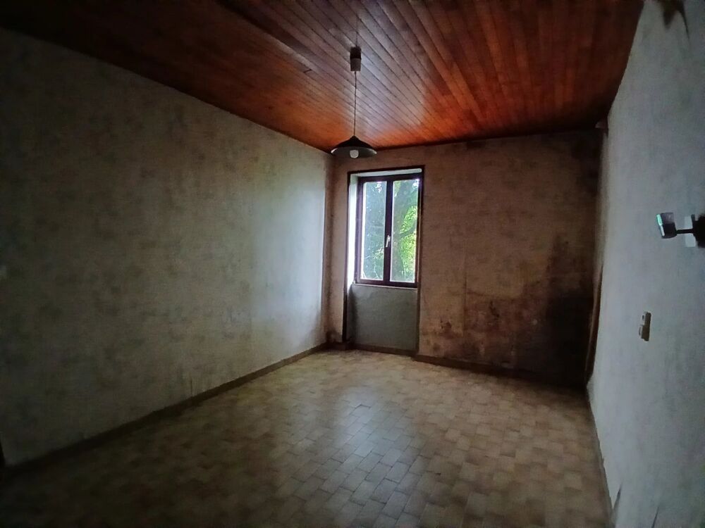 Maison à rénover mitoyenne d'un côté, composée d'une entrée, cuisine, cellier/ buanderie, séjour avec possibilité de mettre un poêle à bois, deux chambres, un bureau, une salle de bains et toilettes.