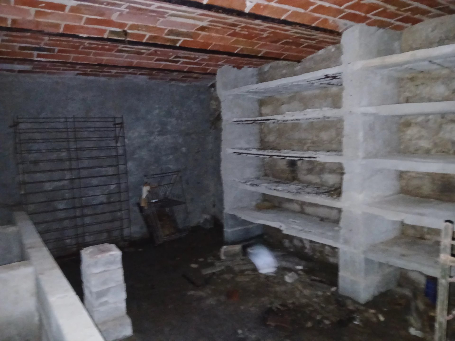 Cour devant, jardin derrière la maison ( terrain constructible en partie), une cave, deux garages en face de la maison.