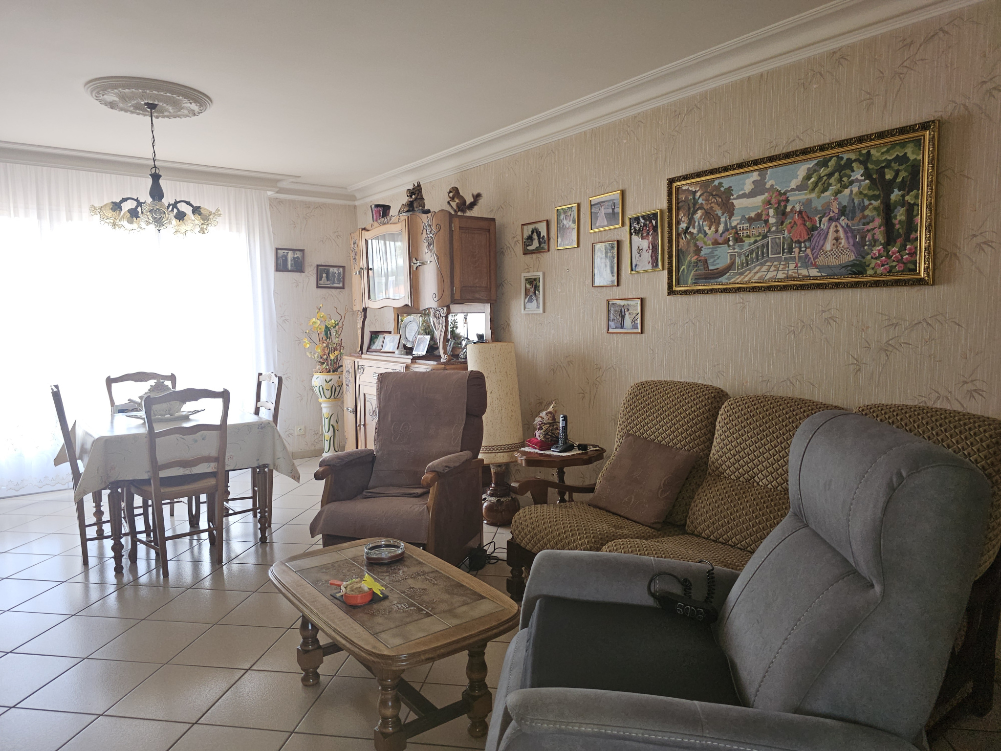 Vaste maison des années 80 de 3 pièces, volumes confortables, bons espaces, garage spacieux avec mezzanine, terrain clos et sans vis à vis.