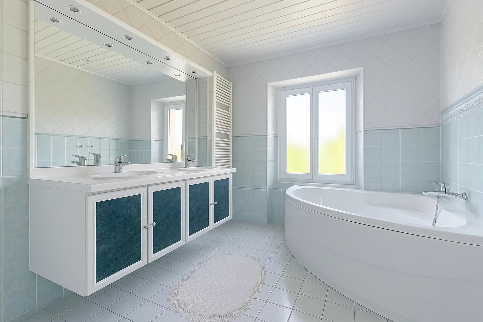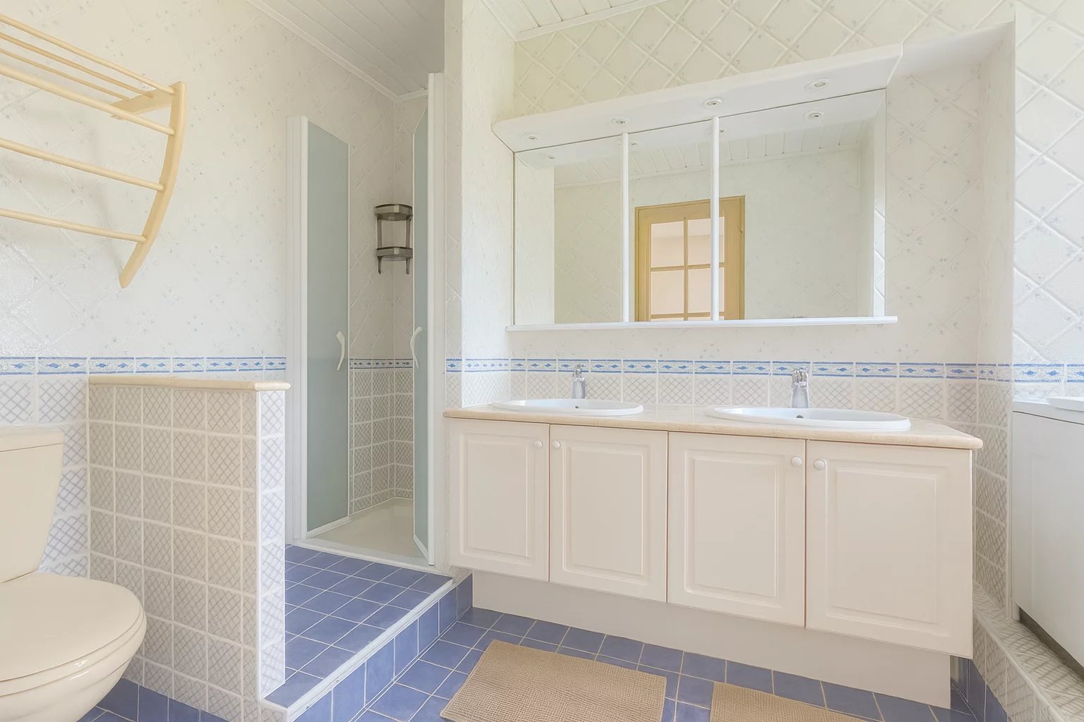 Une salle de bains mixte.