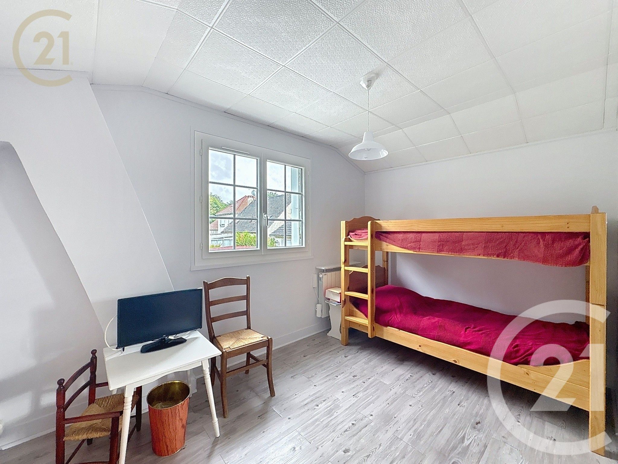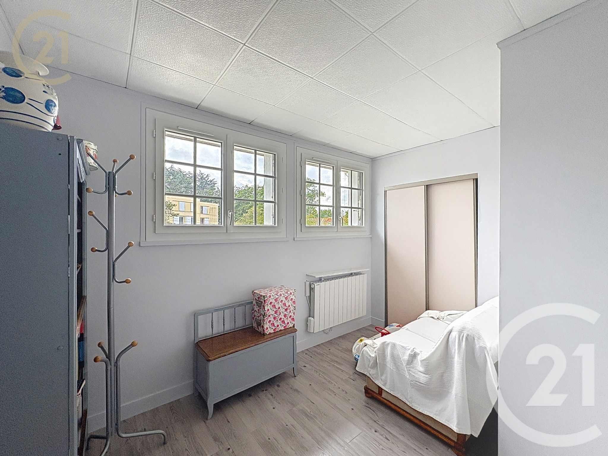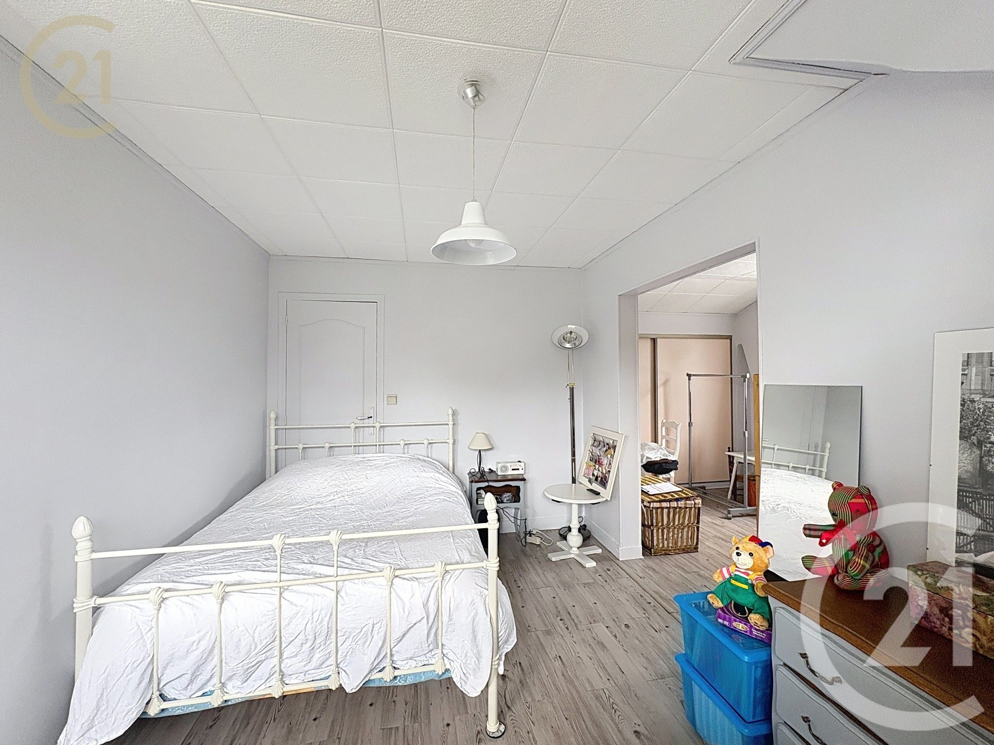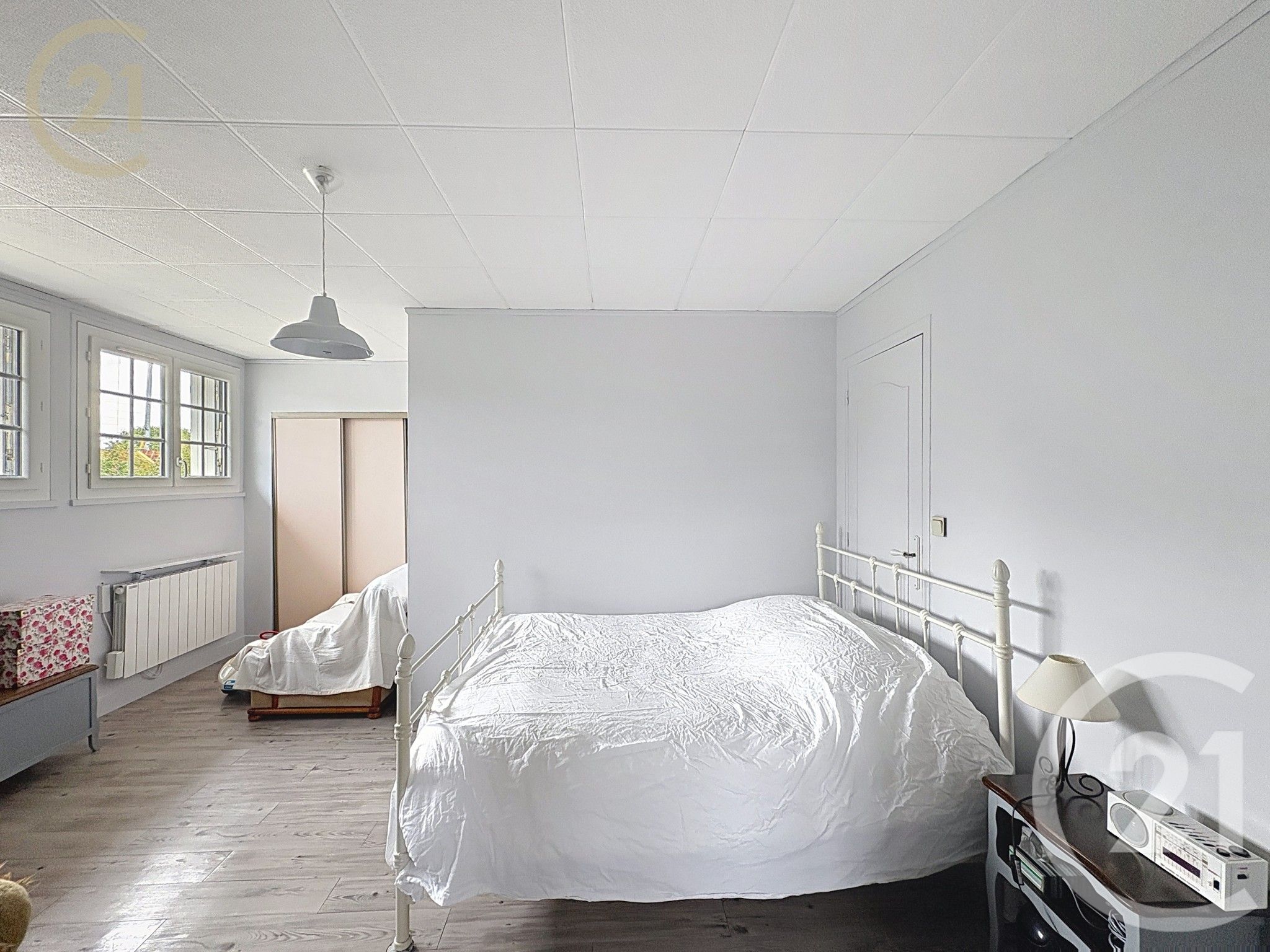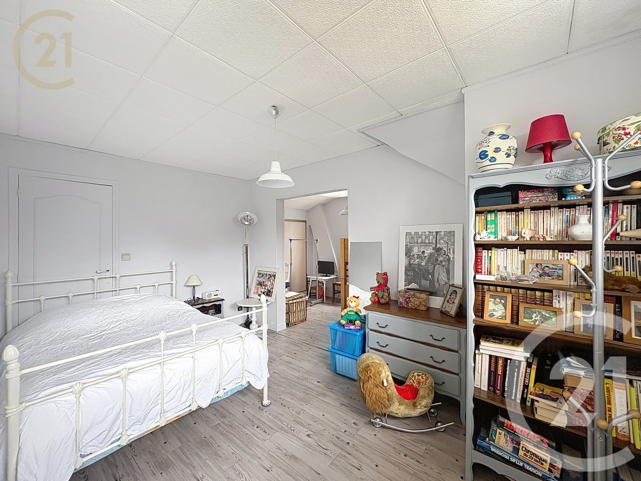 un palier desservant une spacieuse chambre modulable (idéal pour créer un bureau ou une chambre supplémentaire),