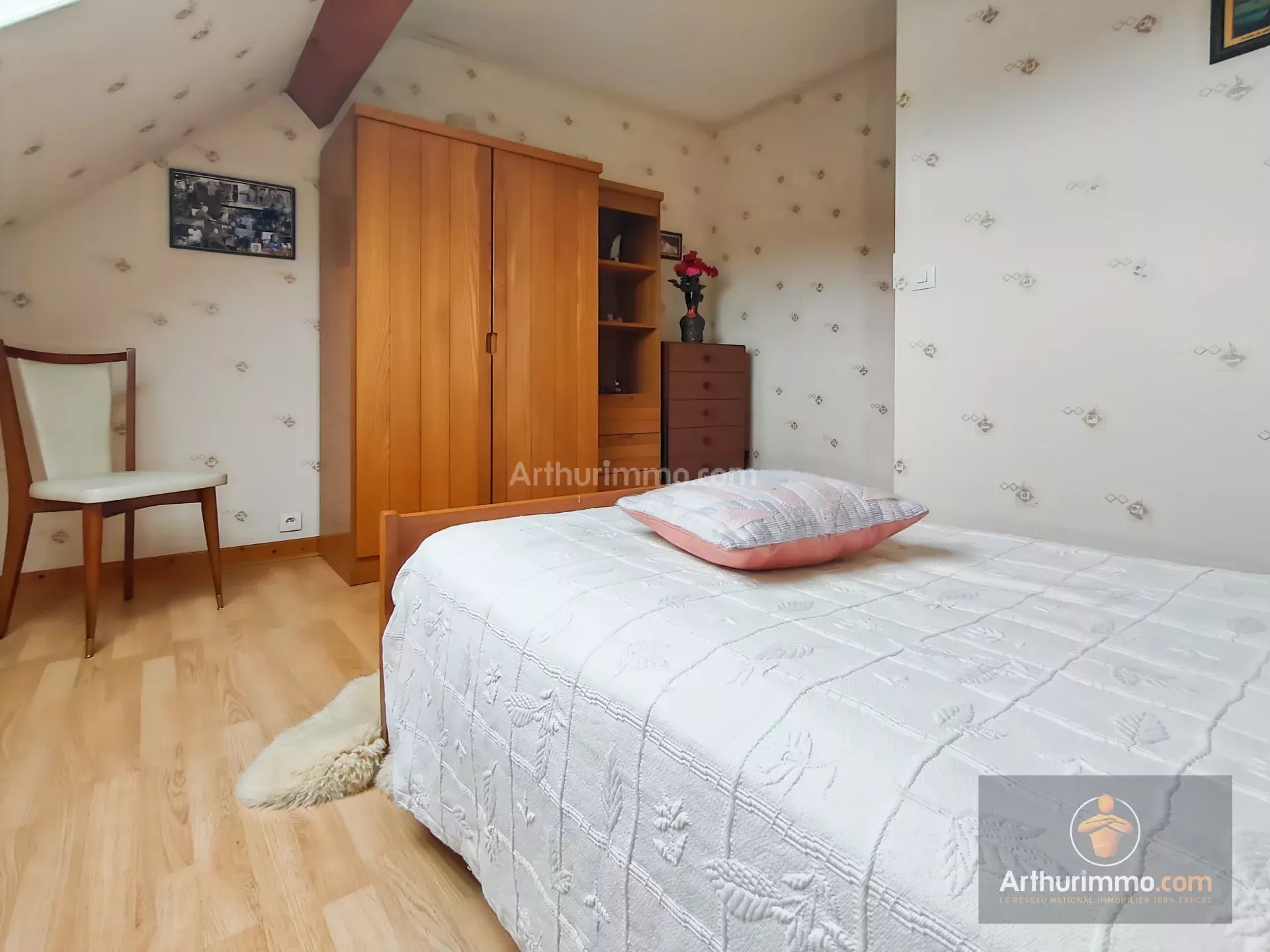 A l'étage : dégagement desservant 3 chambres dont une avec placard et une grande salle de douche avec wc.