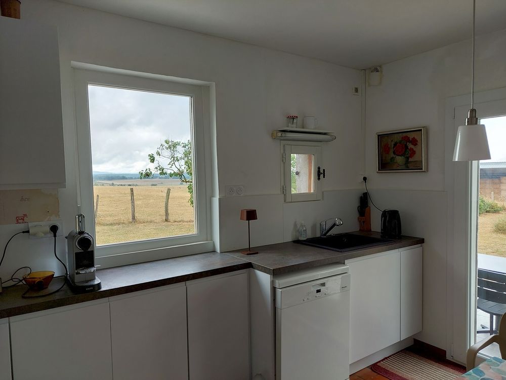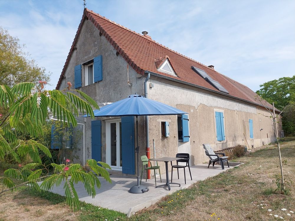 Situation en bout d'impasse pour cette maison de campagne en très bon état général de 106m2 env.hab., 2 chambres, 2 salles de bains, 2 salons, double vitrage, chauffage bois et cc fuel, toiture récente, poutres, tomettes, grange attenante avec grenier au dessus, l'ensemble sur très beau jardin arboré de 2688 m2 + terrasse et superbe vue sur la campagne et le Morvan !!!!