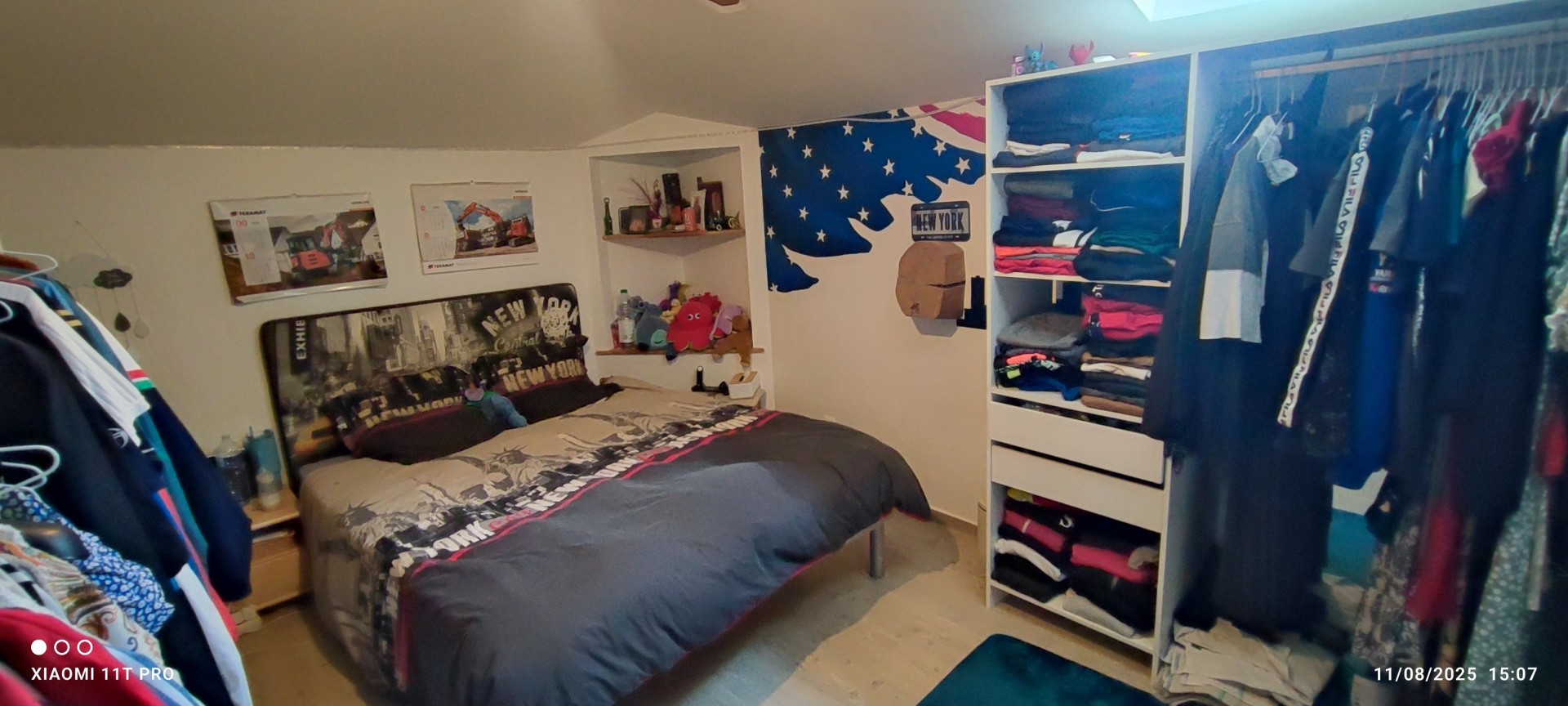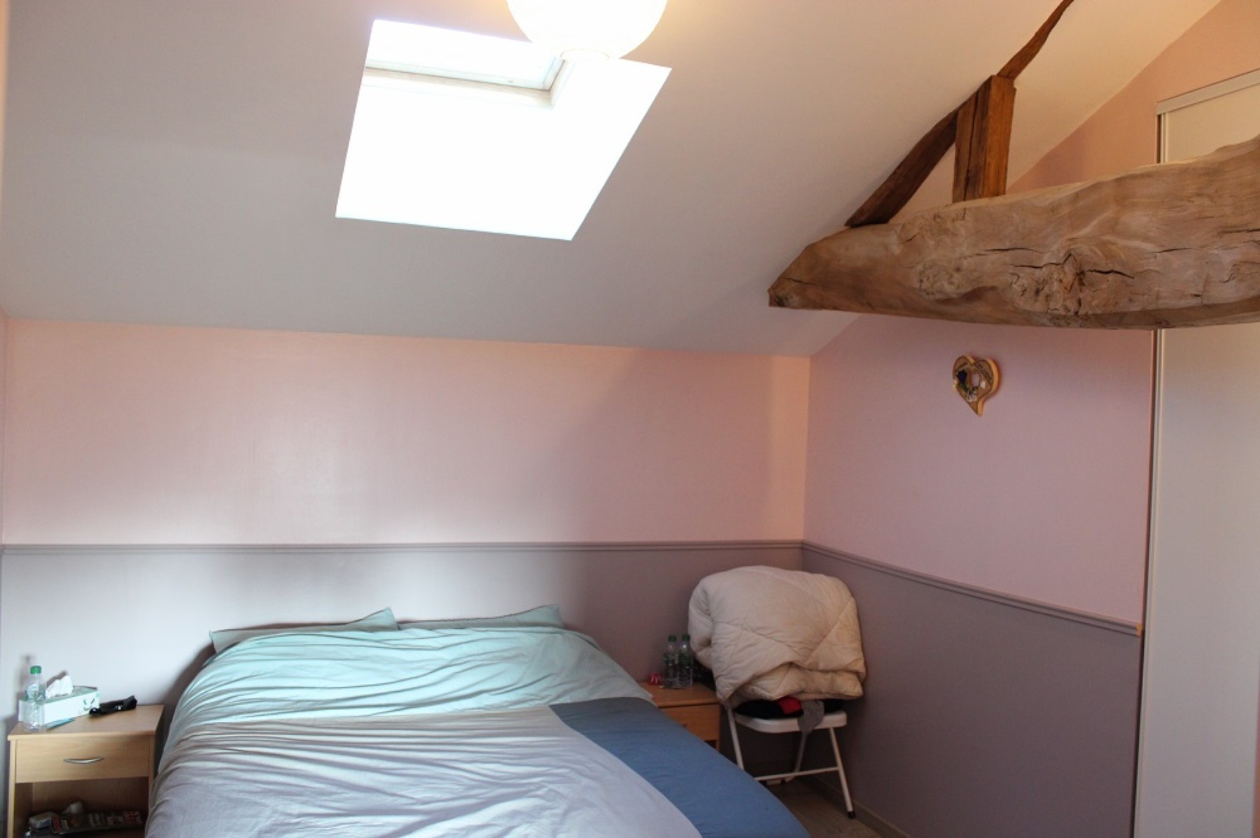A l'étage, nous retrouvons une Mezzanine de 9 m², pouvant accueillir un bureau, 2 chambres avec placard muraux.
