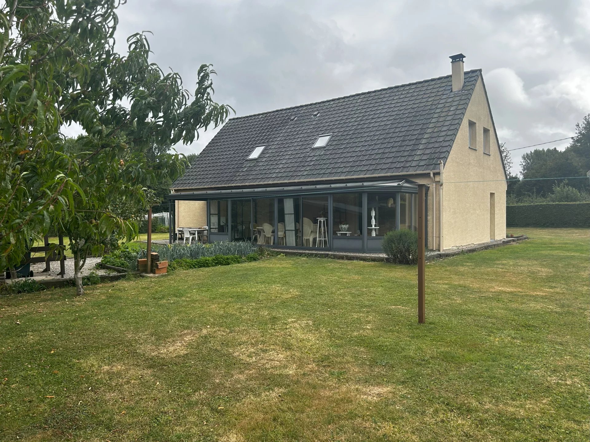 MD2061 A proximité d'Hucqueliers, Pavillon indépendant offrant une vie de plain pied comprenant hall d'entrée, séjour avec feu Regnier, cuisine équipée, cellier, buanderie, véranda, une chambre et une salle de bains en rez de chaussée.A l'étage quatre chambres et une salle de bains.