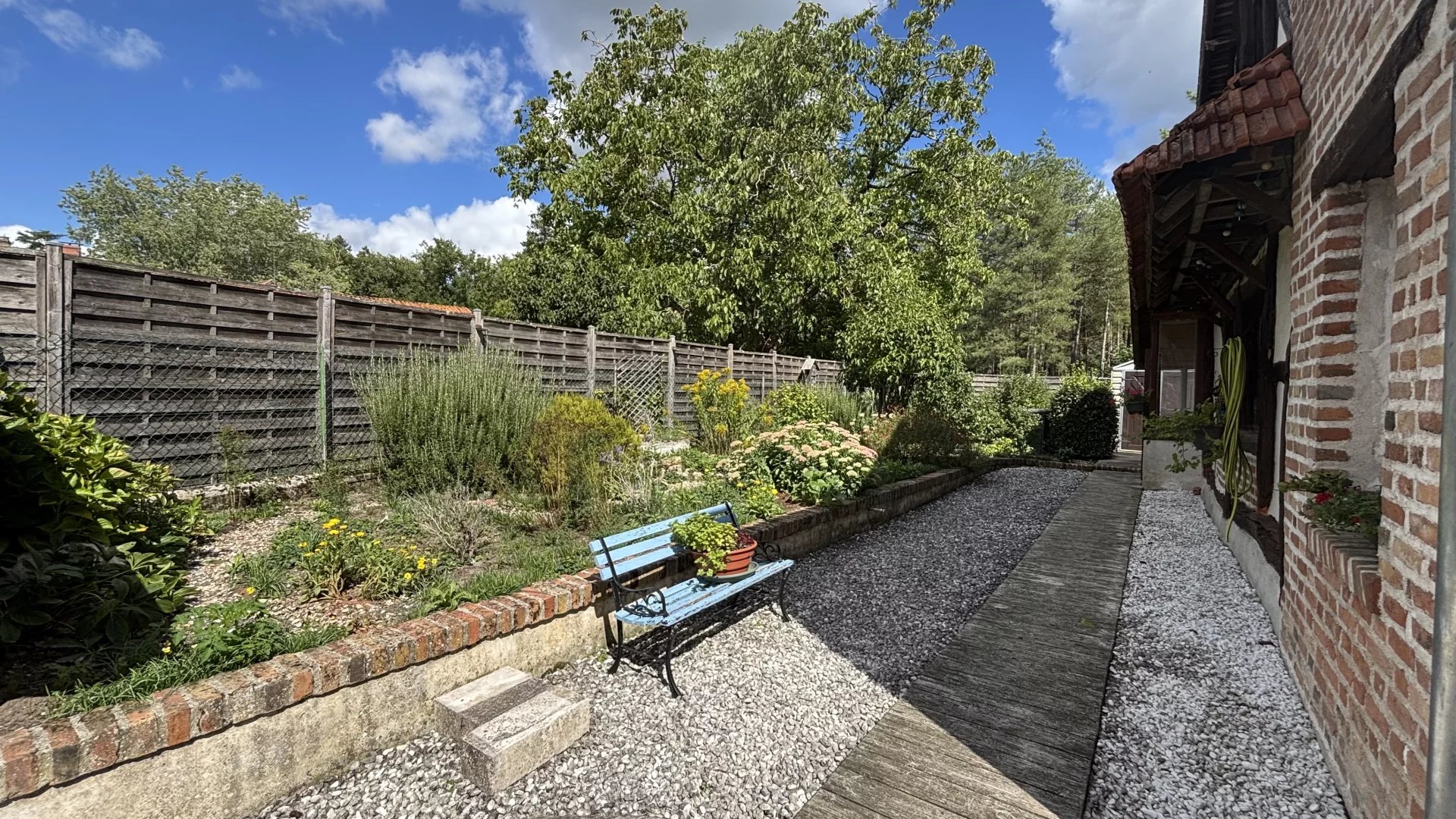À l'extérieur, vous profiterez d'un jardin intimiste de 420 m², agrémenté d'une grange aménagée pouvant servir d'atelier, de studio ou de gîte, ainsi que d'une dépendance pour vos projets ou rangements.