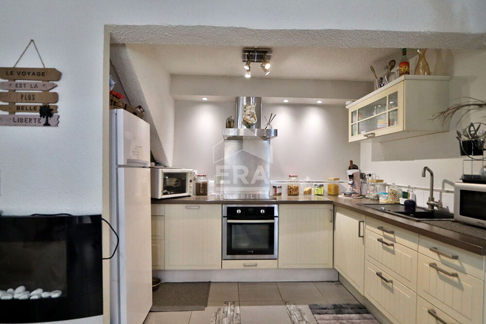 Une pièce de vie lumineuse et sa cuisine aménagée et équipée, idéale pour partager des moments conviviaux.