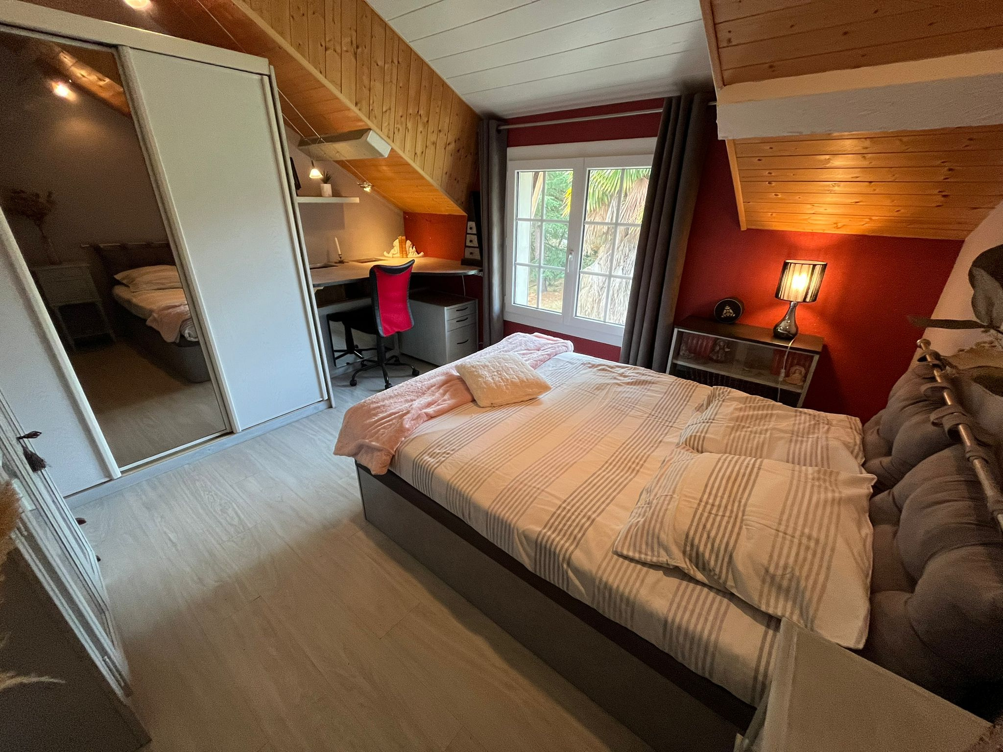 A l'étage, 3 chambres dont une de 25m2 pouvant servir de salle de jeux +1 bureau +une bibliothéque